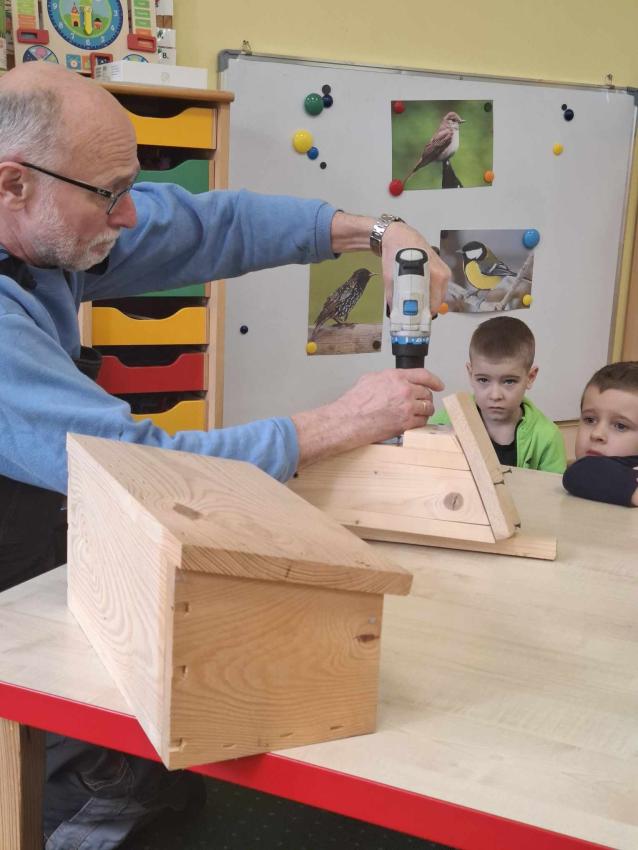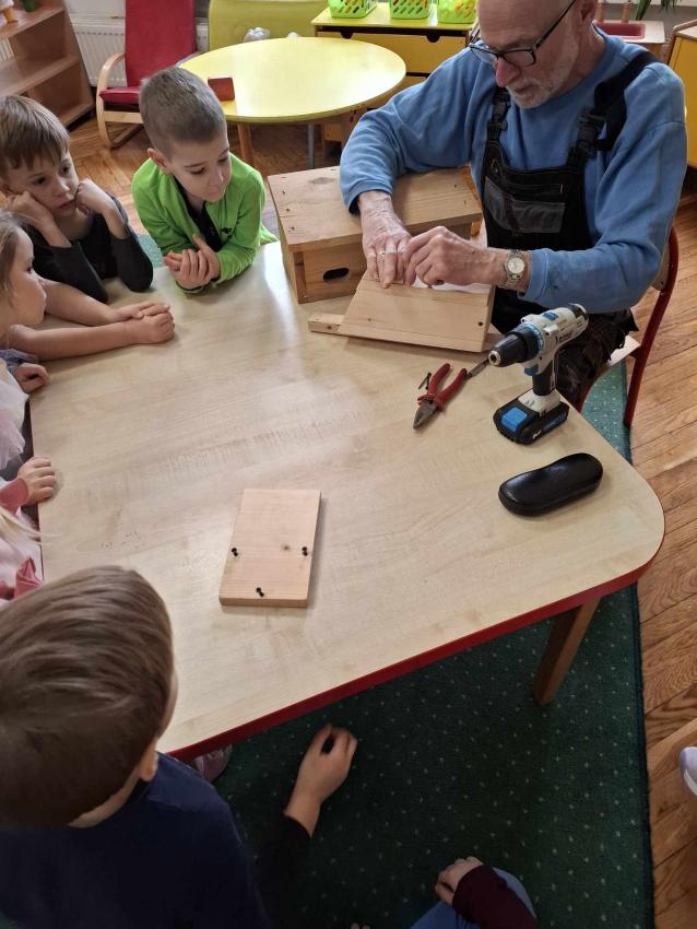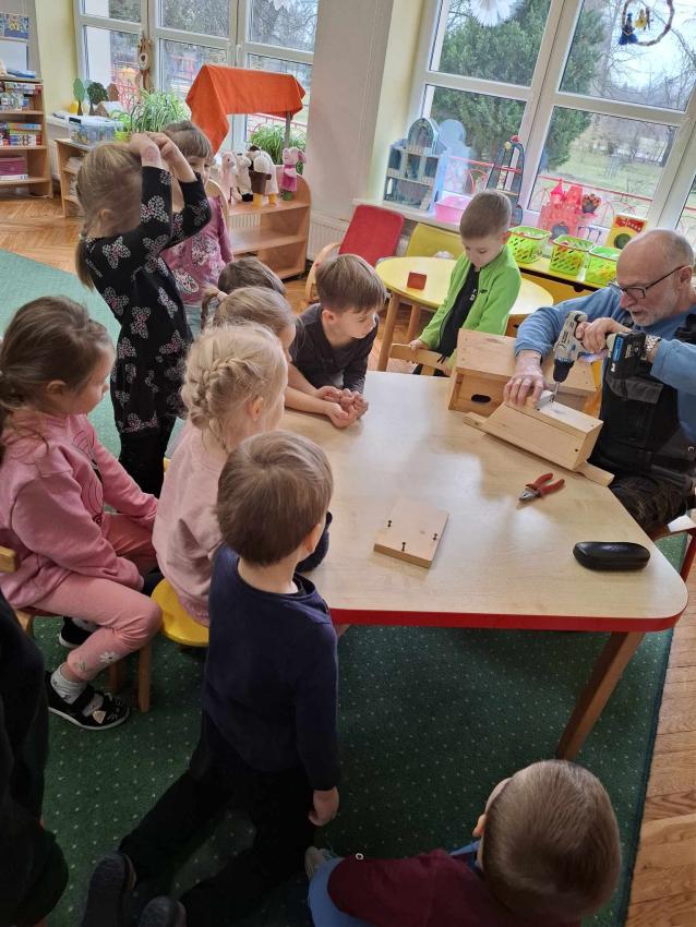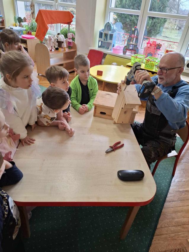 Razem z dziećmi zbudowaliśmy piękny domek dla ptaków, a następnie zawiesiliśmy go w naszym ogrodzie przedszkolnym. To była wspaniała lekcja pracy zespołowej, odpowiedzialności i troski o przyrodę. Teraz czekamy na naszych pierwszych skrzydlatych lokatorów!