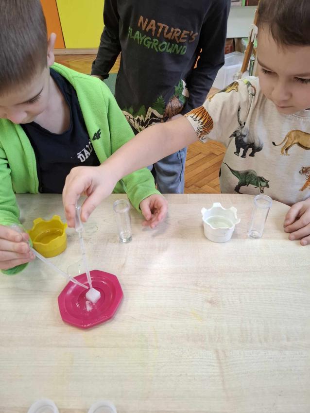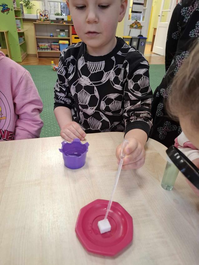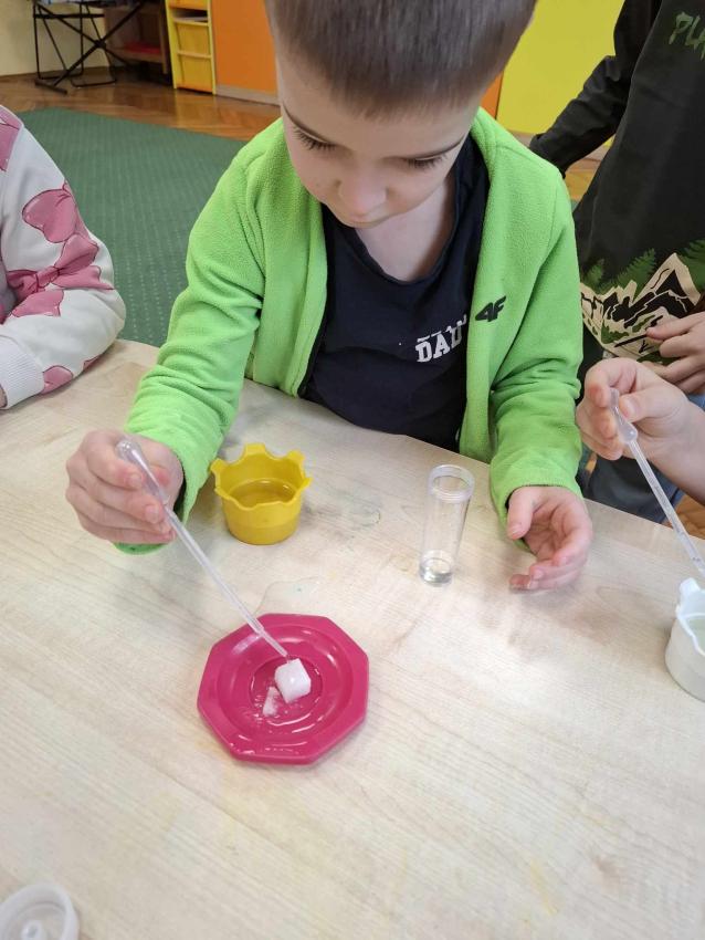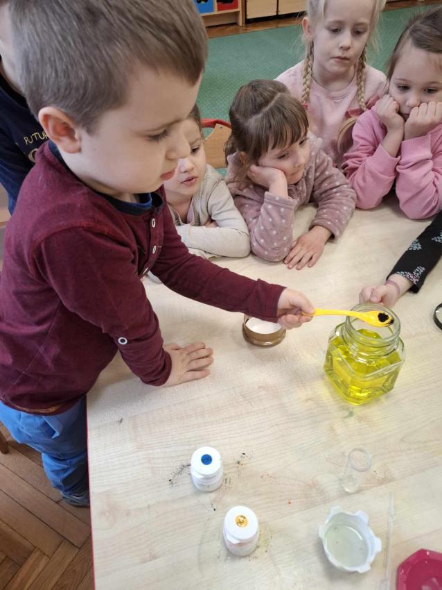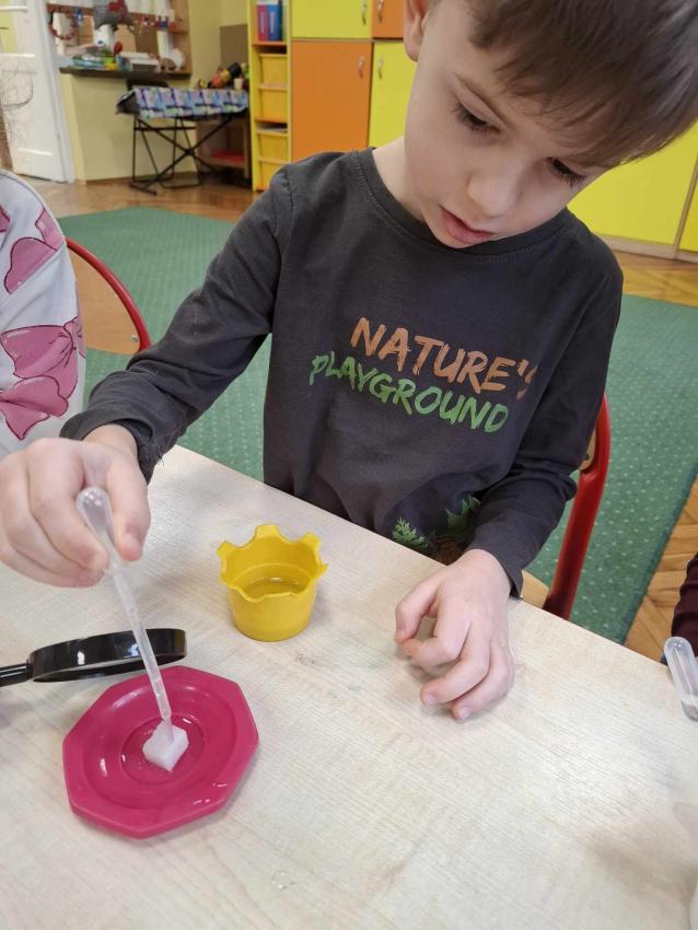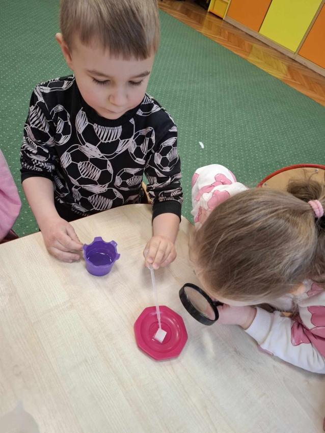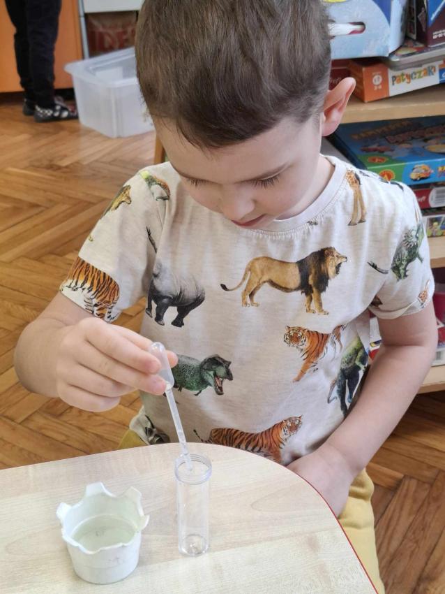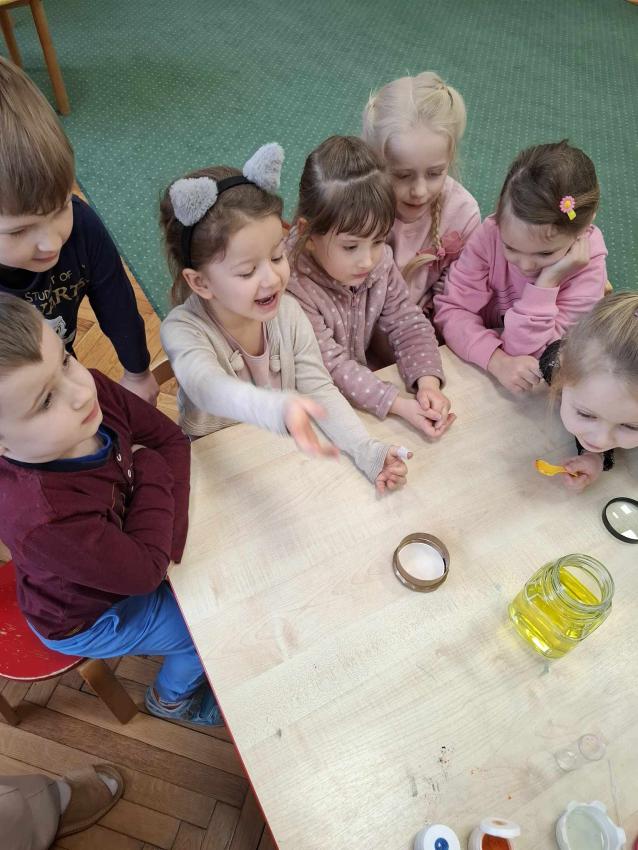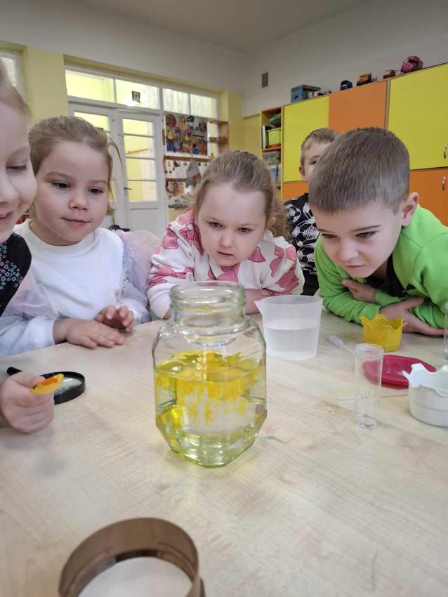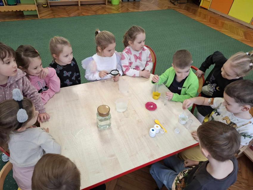 Projekt Mali Wielcy Odkrywcy etap. II. Tym razem pod lupę bierzemy wodę. Dzięki zajęciom dzieci poznały jej trzy stany skupienia oraz wykonały szereg doświadczeń. Nauka przez zabawę zawsze przynosi najlepsze efekty :)