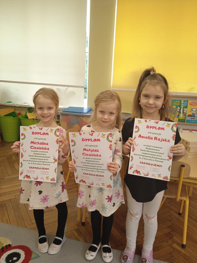 Gratulacje dla naszych laureatek w konkursie na najpiękniejszą kartkę bożonarodzeniową.