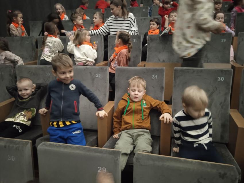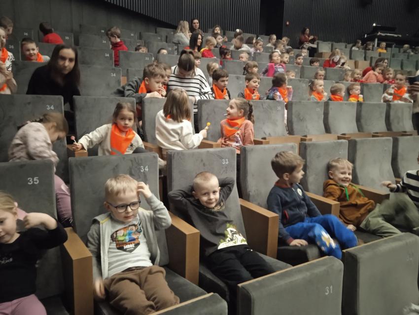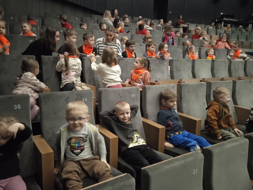 Żabki na spektaklu pt. "Bajka o królewnie Marysi i lodowej górze"