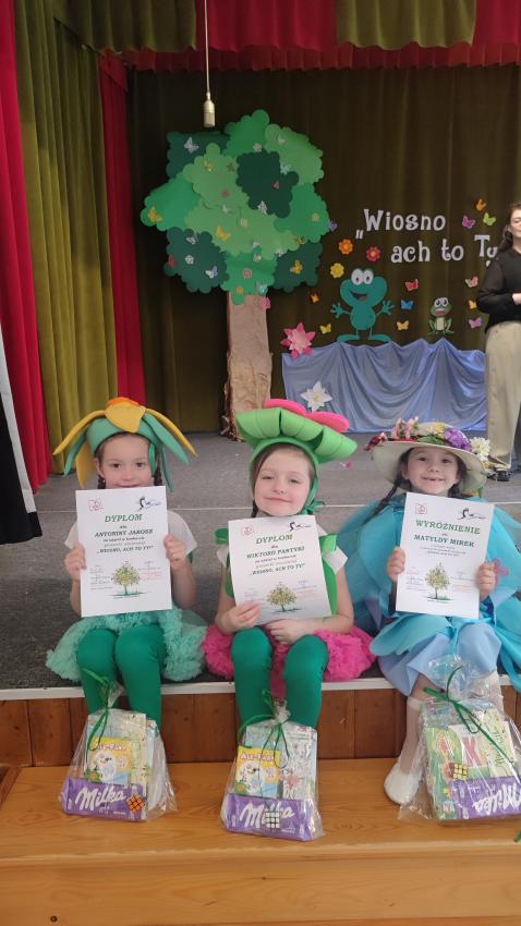 Dnia 19.03.2025 roku dziewczynki z grupy IV Leśne Ludki - Antosia, Matylda i Wiktoria reprezentowały nasze przedszkole w Konkursie Piosenki Wiosennej w przedszkolu Sacre Coeur w Tarnowie. Matylda jako solistka za swój występ otrzymała WYRÓŻNIENIE! Antosia i Wiktoria rozbawiły publiczność i otrzymały ogromne brawa!! GRATULUJEMY I ŻYCZYMY DALSZYCH SUKCESÓW !!