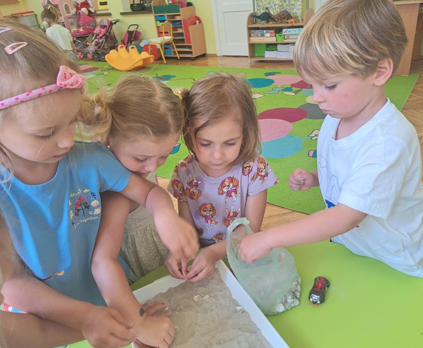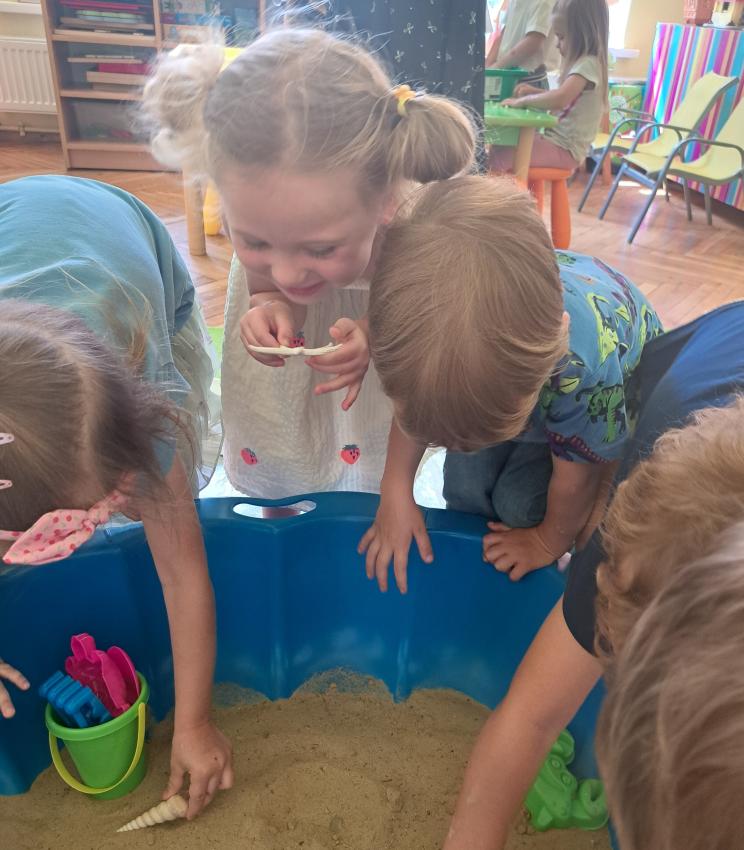 Wakacje coraz bliżej, a już dziś Pracowite Pszczółki wybrały się w podróż nad morze ! Dzieci odkrywały skarby jakie można znaleźć na plaży, dowiedziały się jak atrakcyjnie można spędzać czas nad morzem. Miały okazję również samodzielnie wykonać piasek, z którego można ulepić prawdziwe babki. Ach, co to była za przygoda !
