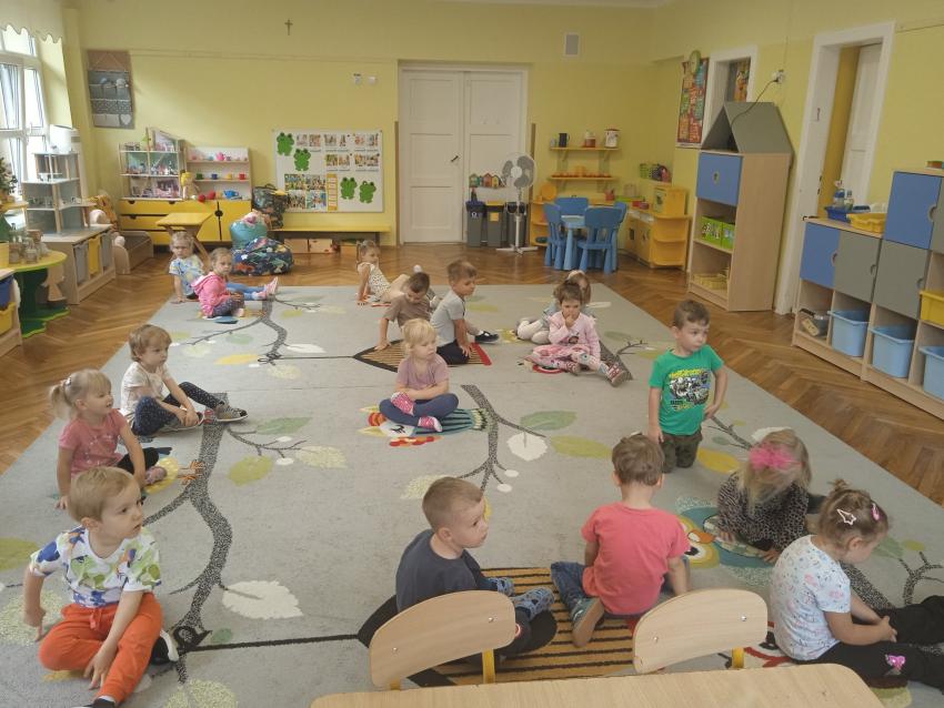 Pracowite Pszczółki spędziły kolejny dzień w przedszkolu - odważnie i z uśmiechem uczestniczyli w zajęciach z rytmiki oraz języka angielskiego