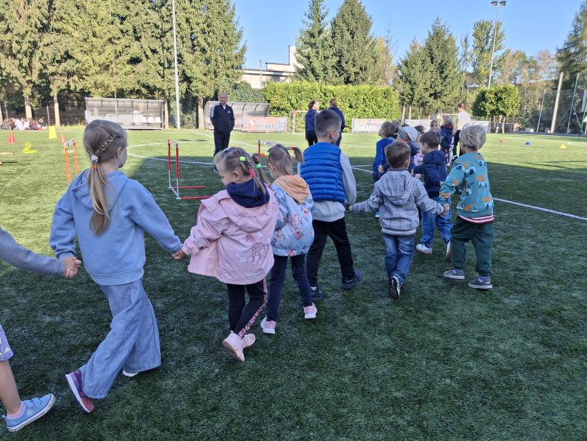 To był radosny, pełen uśmiechu i aktywności dzień. Uczestniczyliśmy w zajęciach sportowych obejmujących tor pełen wyzwań lekkoatletycznych oraz rozgrywkę w piłkę nożną. Bardzo dziękujemy za zaproszenie!
