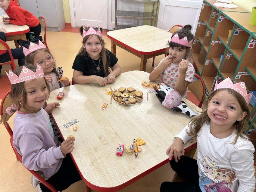 Dziś w naszym przedszkolu świętowaliśmy Dzień Dziewczynki. Chłopcy złożyli koleżankom serdeczne życzenia i wręczyli im drobne upominki. Na wszystkich czekał także słodki stół z pysznymi przekąskami. W sali panowała radosna atmosfera, pełna uśmiechów