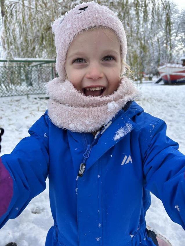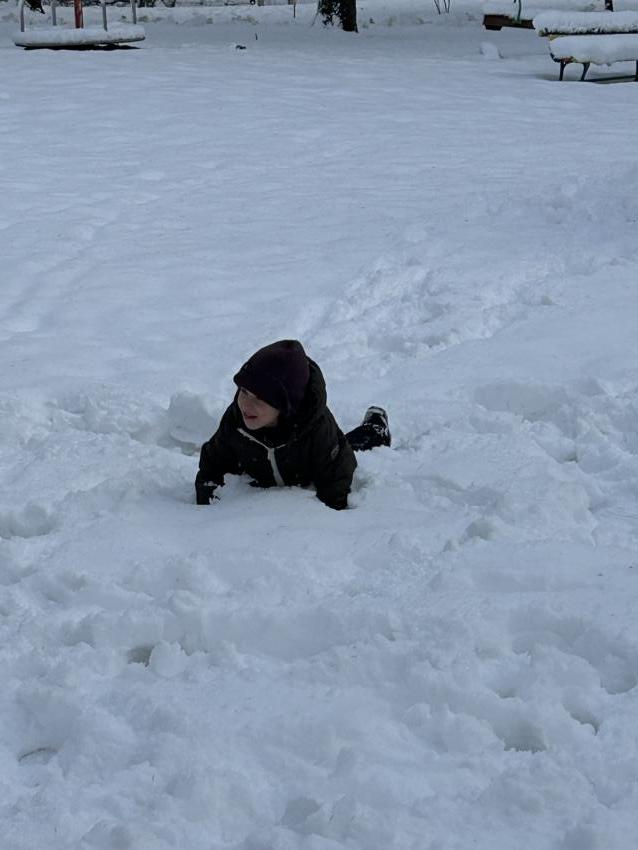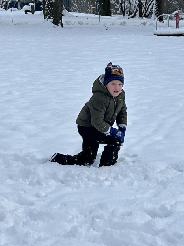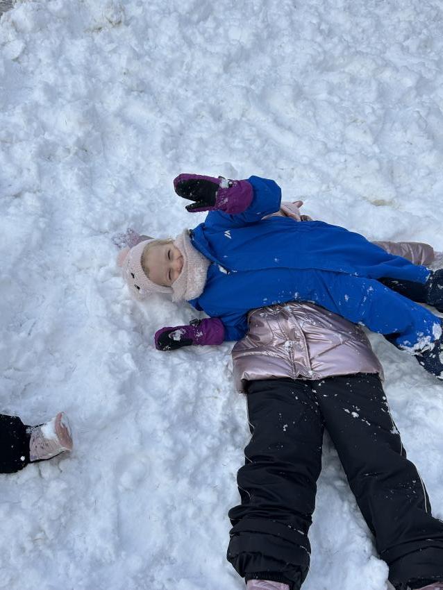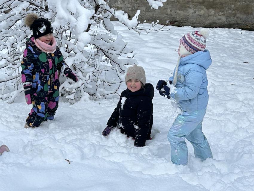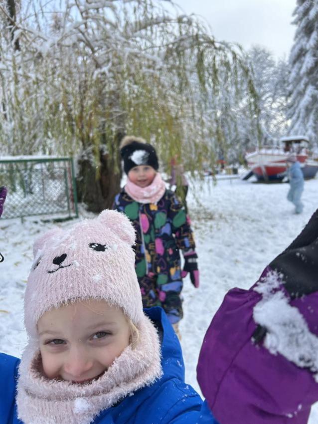 Przedszkolaki z radością biegają po śniegu, lepią bałwana i rzucają się śnieżkami, tworząc wesołą zimową zabawę. Z entuzjazmem robią aniołki na śniegu i z dumą prezentują swoje zimowe dzieła ? śnieżne kule, bałwanki i małe budowle, ciesząc się każdą chwilą spędzoną na świeżym powietrzu.
