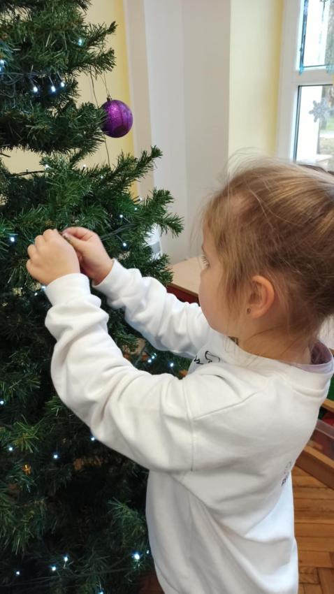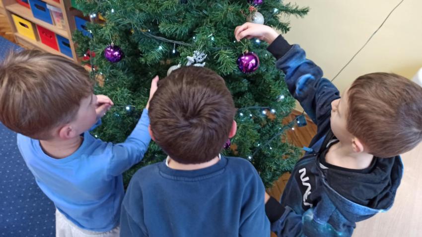 Świąteczne ubieranie choinki i przygotowywanie się do spotkania ze Świętym Mikołajem