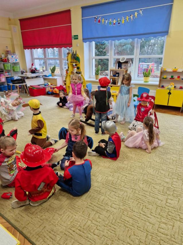 Karnawał, to czas wesołej zabawy. Tak było i dziś. Dzieci przepięknie przebrane za różne postaci, tańczyły w rytm muzyki. Tworzyły się koła, kółeczka i węże. Zabawa doskonała! Zdjęcia z zabaw tanecznych, z sali teatralnej będą zamieszczone na stronie głównej galerii.