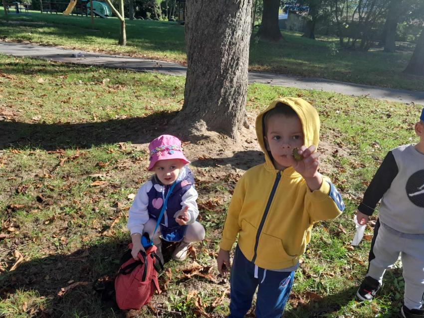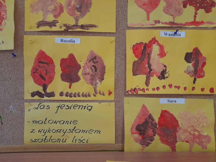 To cykl zajęć poświęconych jesieni i jej uroków. Dzieci słuchały wierszy i opowiadań dotyczących jesieni. Samodzielnie, pięknie opowiadały historyjki obrazkowe. By rozruszać dzieci zawsze towarzyszy nam zabawa ruchowa np. do piosenki /Ola i liście/w formie opowieści ruchowej, gdzie spacerowały, wirowały i zbierały rozrzucane liście. Później je przeliczały. Do pracy plastycznej zatytułowanej /Las jesienią/ wykorzystano szablony liści (imitujące drzewa). Innym pomysłem było wykonanie jesiennych witraży, gdzie na taśmie samoprzylepnej mogły naklejać listki i komponować swoje prace. W temacie jesiennym mówiono również o przygotowaniach leśnych zwierząt do zimy.