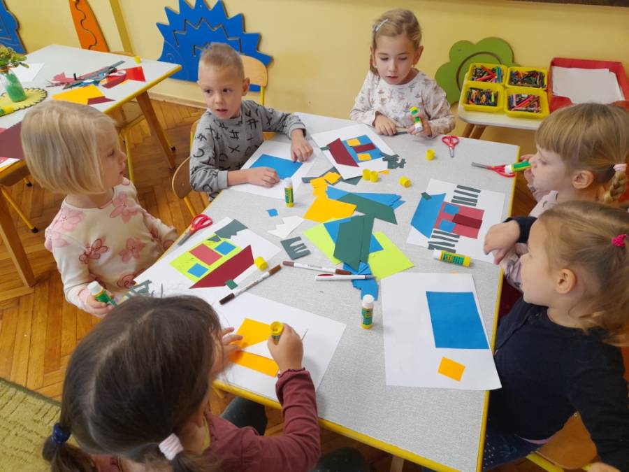 Podczas tygodniowych zajęć na temat sztuki, dzieci poznały różne jej rodzaje. Malowały abstrakcyjne obrazy, wycinały nutki, tworzyły z plasteliny płaskorzeźby. Zapoznały się również z przyborami kreślarskimi, potrzebnymi do wykonania projektów. Temat z dziedziny architektury, wzbudził największe zainteresowanie, a powstałe prace cieszą oko. Wszystkie działania twórcze, poparte były literaturą, filmami naukowymi dla dzieci oraz piosenką.