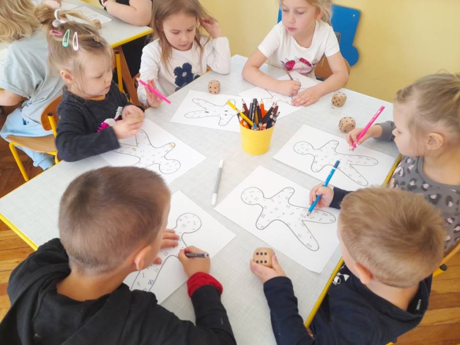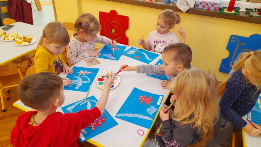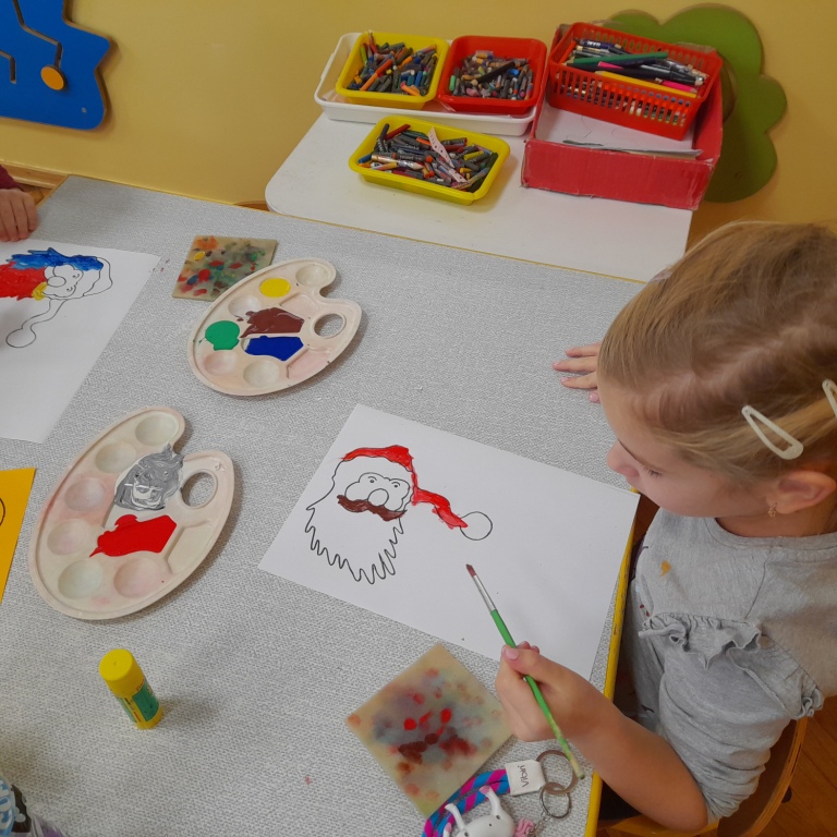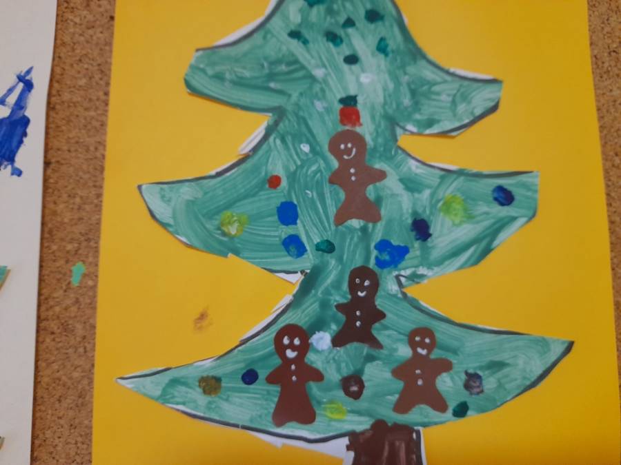 Program zajęć twórczych w grupie, to nie tylko malowanie, ale zdobywanie różnych umiejętności w wielu dziedzinach. Inspiracją jest zawsze tekst literacki, rozmowy, różne wydarzenia przedszkolne oraz doświadczenia dzieci. Zbliżające się Święta, to temat bardzo szeroki, gdzie pomysłów na nowe ciekawe prace nie brakuje. Dziecięce portfolio powiększa się o kolejne prace związane z przedświątecznymi zakupami oraz zdobieniem choinki w piernikowe ludziki.