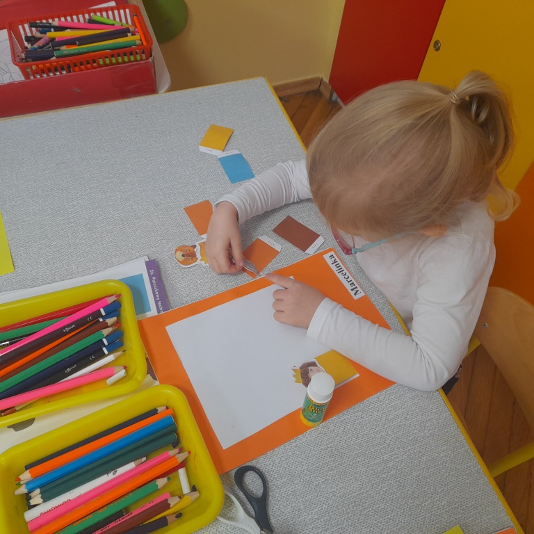 Temat bliski wszystkim dzieciom. Chętnie zabierały głos, opowiadając o swoich bliskich. Wiedzą co to jest drzewo genealogiczne. Nie zapomniały również o zwierzętach domowych, bo one też należą do rodziny. Zajęcie połączono z projektowaniem domu z figur geometrycznych. Powstały ciekawe, odznaczające się wieloma szczegółami prace. Przy okazji utrwalono figury geometryczne oraz kolory.