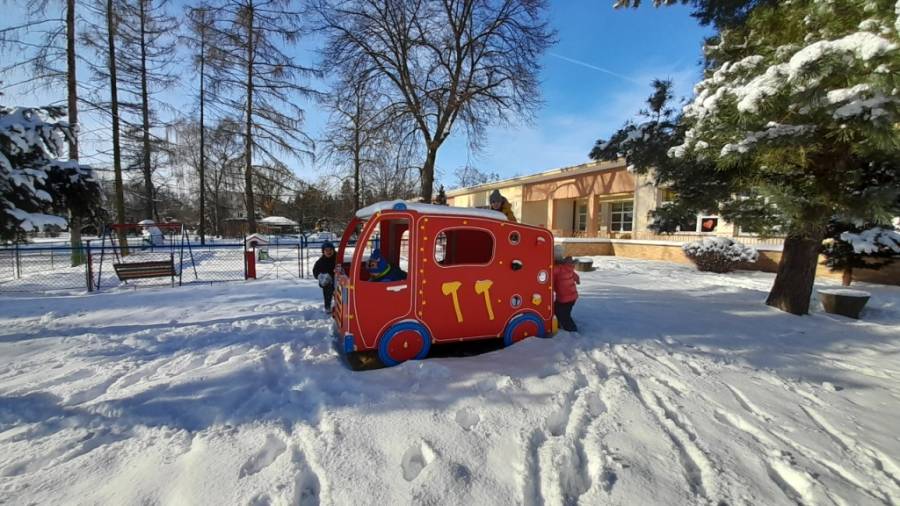 Korzystając z pięknej, słonecznej pogody bawiliśmy się na śniegu. Była bitwa na śnieżki, orzełki, a także eksploracja nowej ogrodowej straży pożarnej. Jednak z zabawą na niej musimy poczekać do wiosny. Kiedy mróz na polu, ubieramy się ciepło, pomagamy również naszym skrzydlatym przyjaciołom przetrwać zimę.