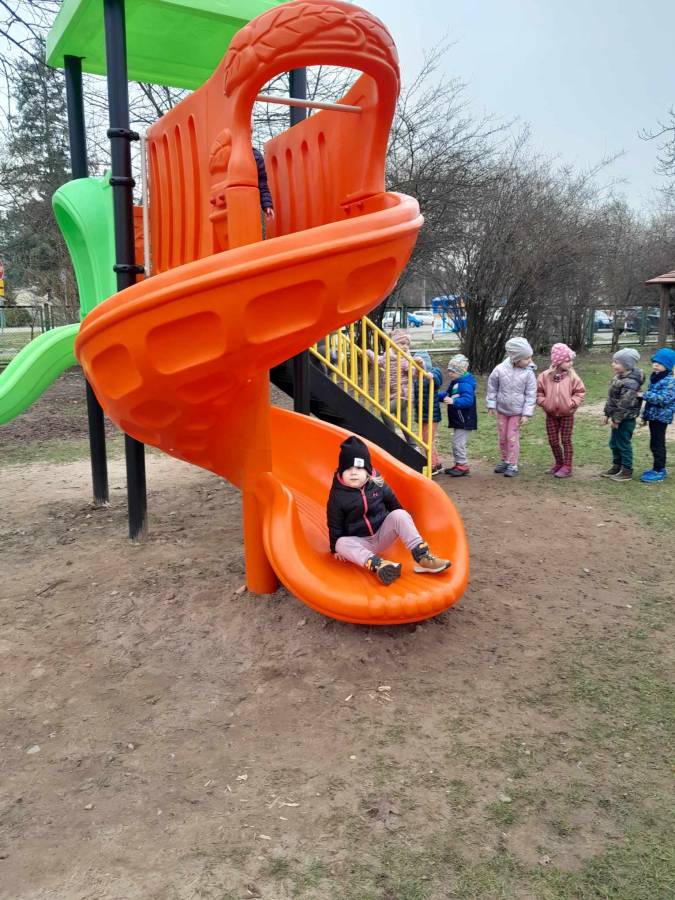 Dzieci zostały przeszkolone, jak bezpiecznie korzystać z nowej zjeżdżalni. Zabawa była super!