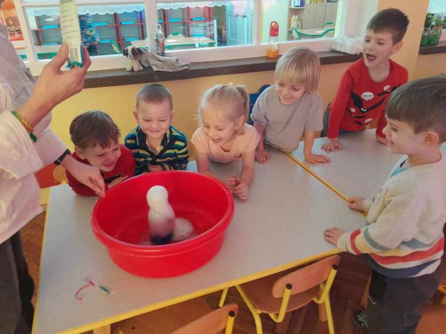 Dzieci poznały sławnych Wynalazców: Thomasa Edisona - uczestnicząc w doświadczeniu /Jak uzyskać prąd z cytryny?/, Alexandra Bella - wykonując telefon z kubków i sznurka. Poznały również polską uczoną Marię Skłodowską Curie. Przyglądały się doświadczeniom połączenia sody oczyszczonej z octem i wodą - uzyskując pieniącą substancję, a także łącząc wodę, oliwę i musującą tabletkę - z których powstała kolorowa lawa.