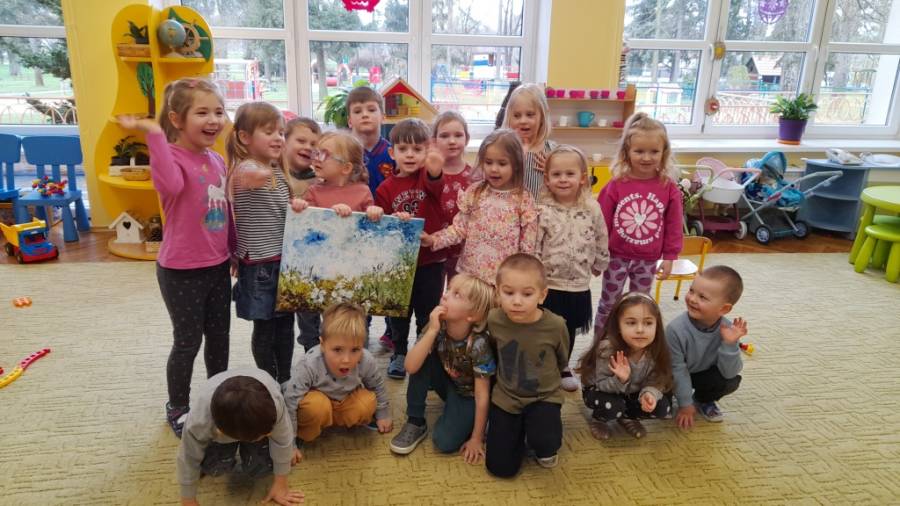 Dzieci poznały nową technikę malowania na płótnie. Wspólnie stworzyły ciekawy obraz o charakterze ekspresjonistycznym, zatytułowany /Wiosna/. Obraz będzie jednym z fantów podczas loterii /Wiosennego koncertu/.
