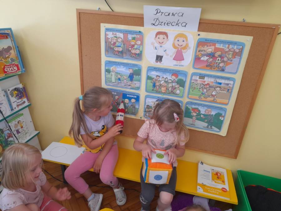 Z okazji Dnia Dziecka życzymy wszystkim dzieciom by były zawsze szczęśliwe! Podczas dzisiejszych zajęć, dzieci miały okazję powspominać spędzenie tego ważnego dnia. Pięknie wypowiadały się o przyjemnościach, jakie Ich spotkały. Miło było słuchać wrażeń. Poznały dziś swoje prawa, chętnie uczestnicząc w zajęciach. Zakończeniem było stworzenie ciekawego plakatu /Nasza przedszkolna rodzina/, gdzie wyraziły swoje emocje. W kolejnym dniu utrwalono dziecięce prawa, a także wspomniano o ich obowiązkach. Powstały książeczki praw i obowiązków.