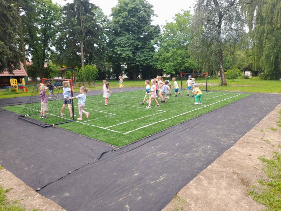 Dziś rozegraliśmy mecz na nowym boisku. Najpierw dziewczynki pokazały swoje umiejętności piłkarskie, a chłopcy głośno kibicowali i na odwrót. Boisko cieszy się dużym zainteresowaniem i jest mocno oblegane.