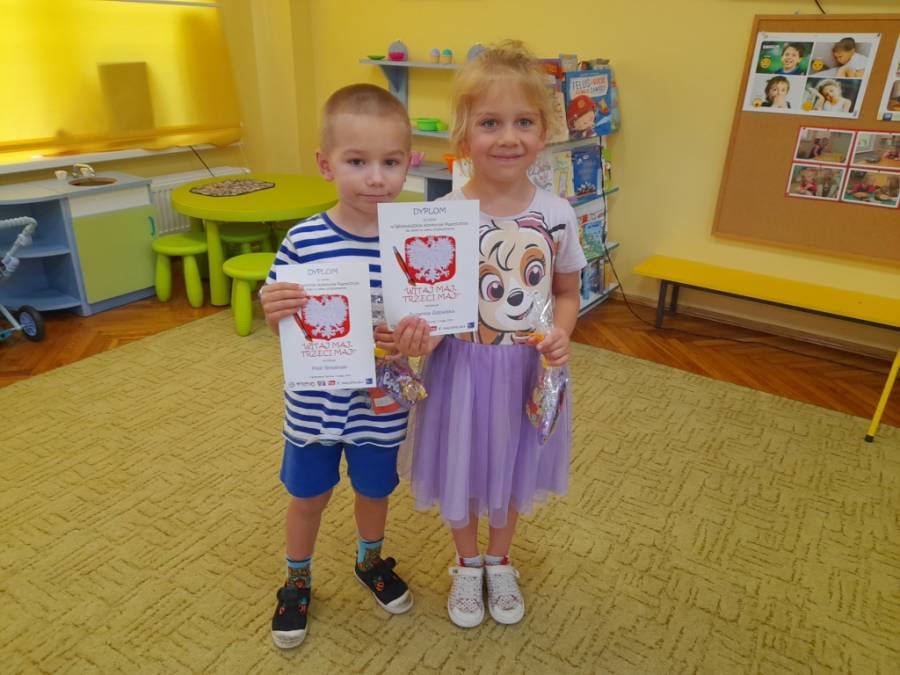 Zuzia i Piotruś wraz z innymi dziećmi z przedszkola, wzięli udział w wojewódzkim konkursie plastycznym o charakterze patriotycznym Stworzyli piękny plakat, za który otrzymali drobne upominki. Brawo dzieci!