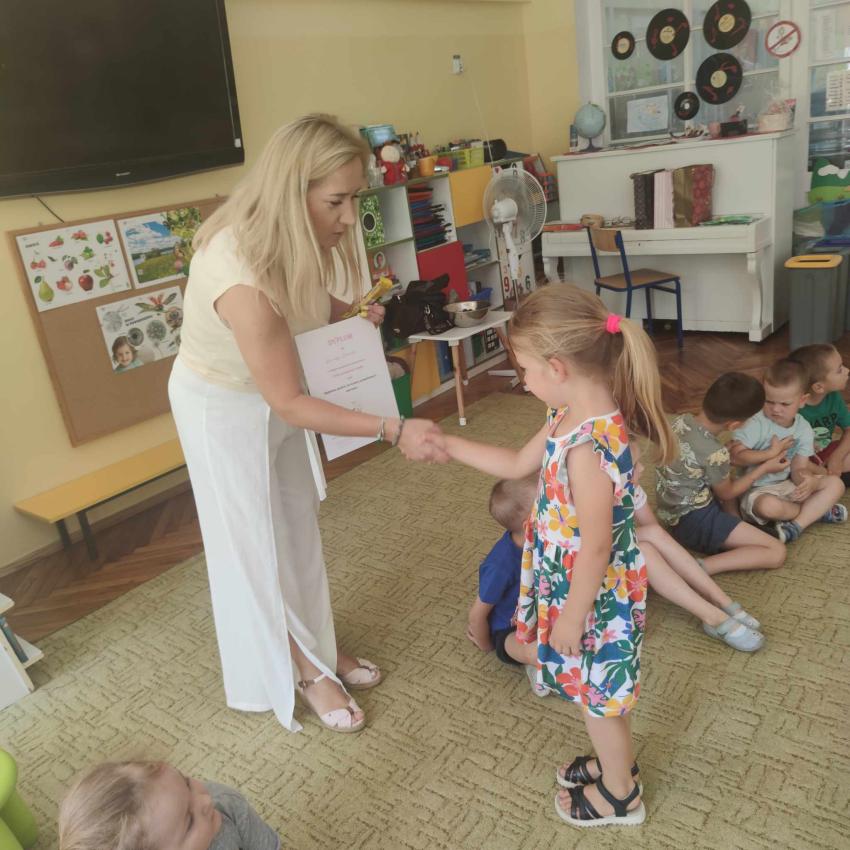 Delegacja czworga dzieci z gr. Misiów oraz maluszki z gr.VI Pracowitych Pszczółek zaprezentowały swój program artystyczny na powitanie przyszłych przedszkolaków.