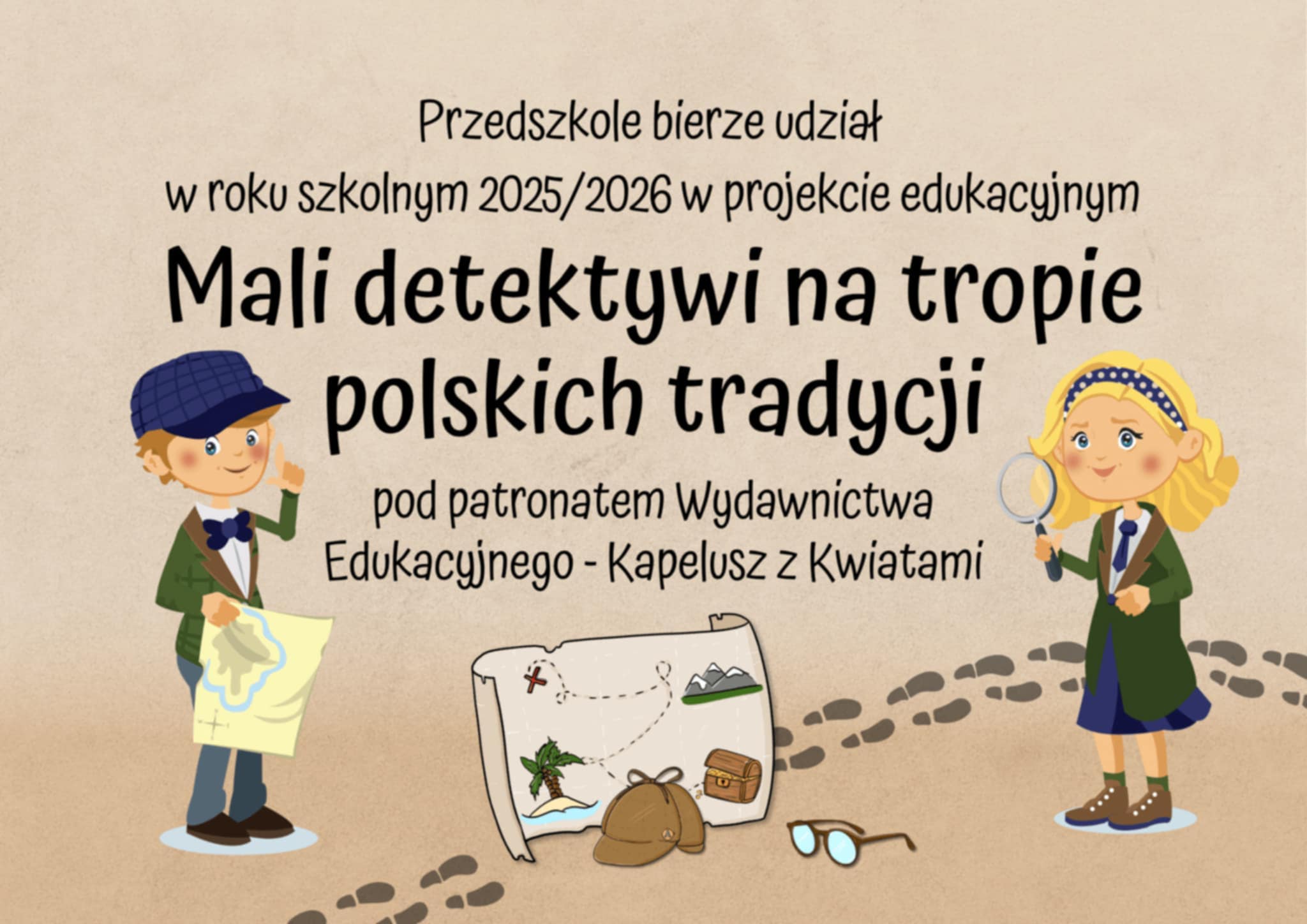 Projekt „Mali detektywi na tropie polskich tradycji” to interaktywny, edukacyjny program, który w formie zabawy uczy dzieci polskich zwyczajów, historii i kultury poprzez detektywistyczne zadania, zagadki, krzyżówki, rebusy i kreatywne prace, rozwijając przy tym myślenie krytyczne, kreatywność, koncentrację i pracę zespołową.