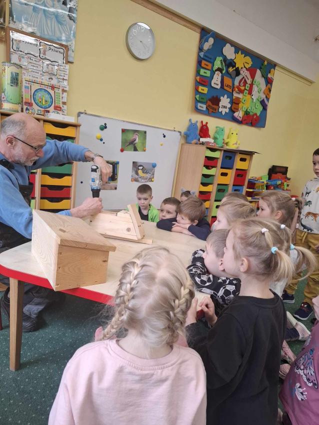 Razem z dziećmi zbudowaliśmy piękny domek dla ptaków, a następnie zawiesiliśmy go w naszym ogrodzie przedszkolnym. To była wspaniała lekcja pracy zespołowej, odpowiedzialności i troski o przyrodę. Teraz czekamy na naszych pierwszych skrzydlatych lokatorów!