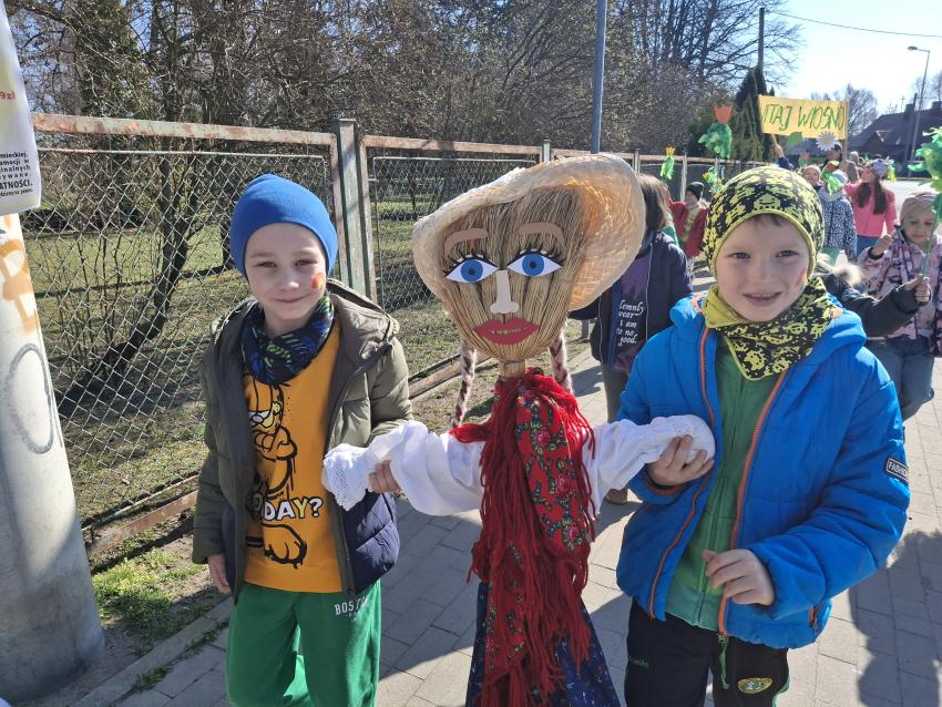 Leśne Ludki, w towarzystwie dzieci z całego przedszkola, z radością przywitały wiosnę! A Marzanna? Wypłynęła w rejs na biegun południowy. Podobno bawi się z pingwinami w chowanego! :)