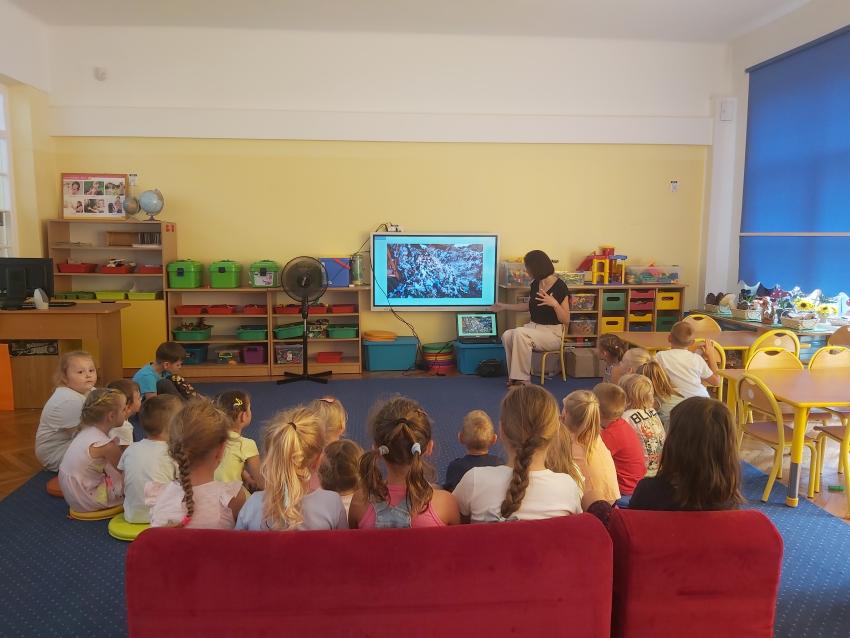 Dzieci uczestniczyły w multimedialnym widowisku edukacyjnym w auli Seminarium Duchownego w Tarnowie.  Była to podróż po różnych zakątkach naszego kraju oraz legend z nimi związanych. Legendy , które zapadły dzieciom w pamięci to: Legenda o Smoku Wawelskim, Bazyliszek, Kamienny niedźwiedź, Legenda o Giewoncie. Chętnie uczestniczyły w zagadkach i quizach, odkryły historie związane z polskimi miastami. Na koniec oglądnęły film animowany Balerina.