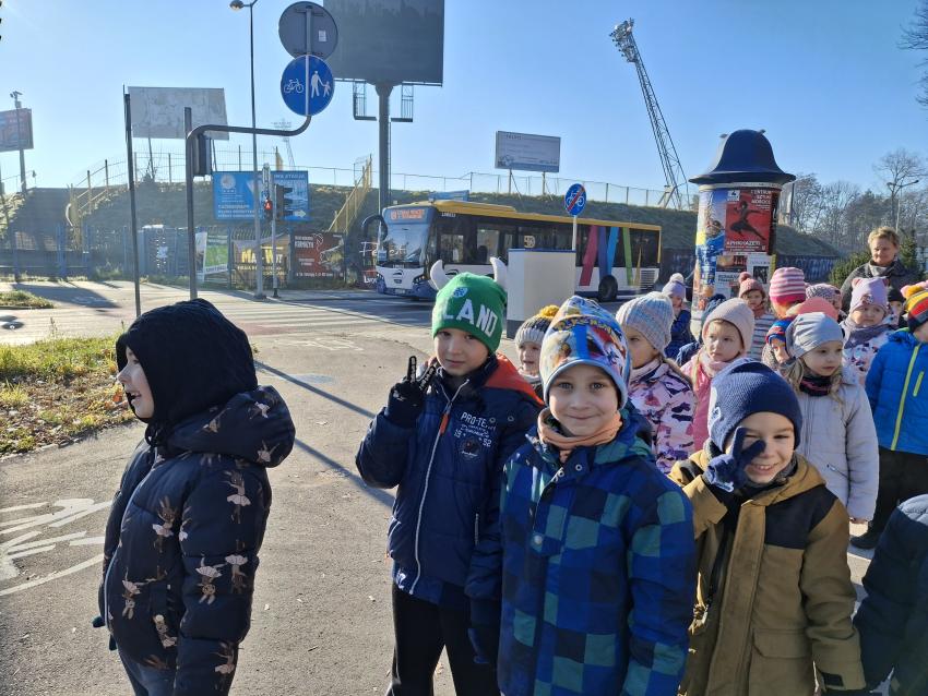 Dzisiaj podczas spaceru zwracaliśmy szczególną uwagę na znaki drogowe, wspólnie zastanawiając się jakie mają znaczenie. Ćwiczyliśmy jak sprawnie i bezpiecznie poruszać się po chodniku oraz jak zachowywać się przechodząc przez przejście dla pieszych.