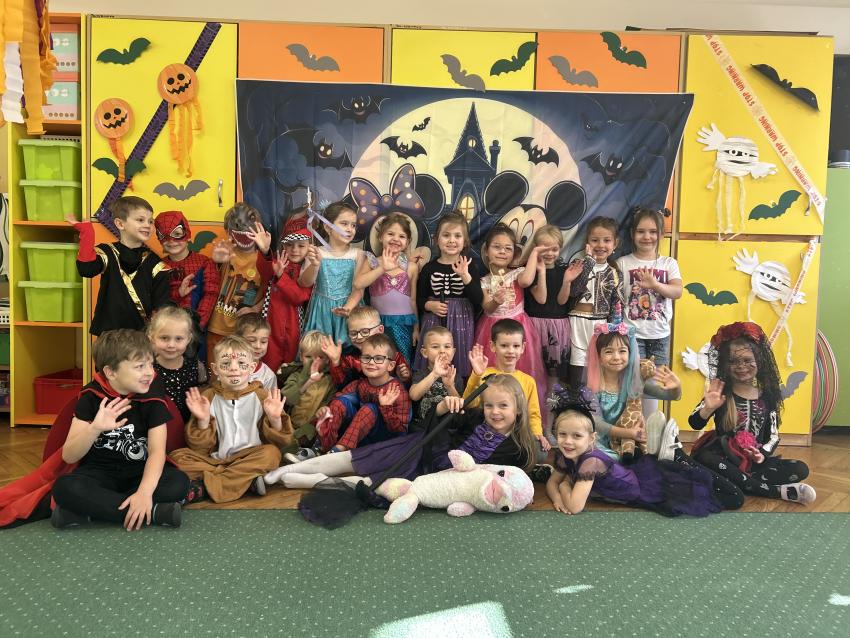 "Strasznie fajny dzień w przedszkolu! ? Dzieciaki świętują Halloween pełne uśmiechów i dobrej zabawy, .Były wesołe tańce, zabawy i konkursy.