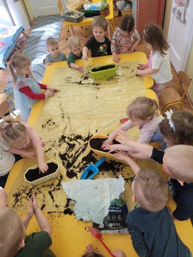 Dzieci szukały odpowiedzi na pytanie " Czego rośliny potrzebują do wzrostu ? Założyły hodowlę rzeżuchy , szczypioru i roślin kwiatowych , które będą teraz pielęgnować i obserwować .
