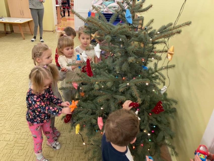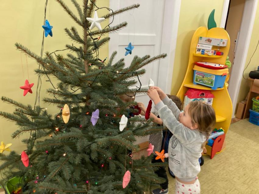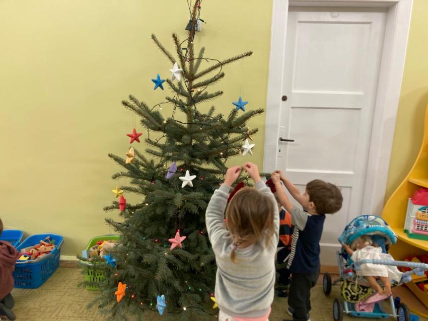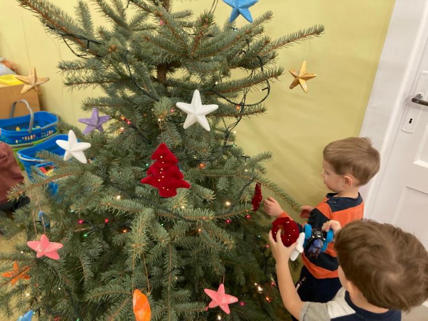 17.12.2021 r - Maluszki ubierają swoją choinkę, którą dostaliśmy od mamusi Milenki - Grupa I