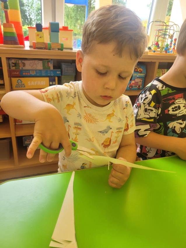 Kolorowe lody  - smakowita praca plastyczna . Dzieci doskonaliły posługiwanie się nożyczkami - to świetny sposób na doskonalenie motoryki małej , mięśni palców i dłoni .