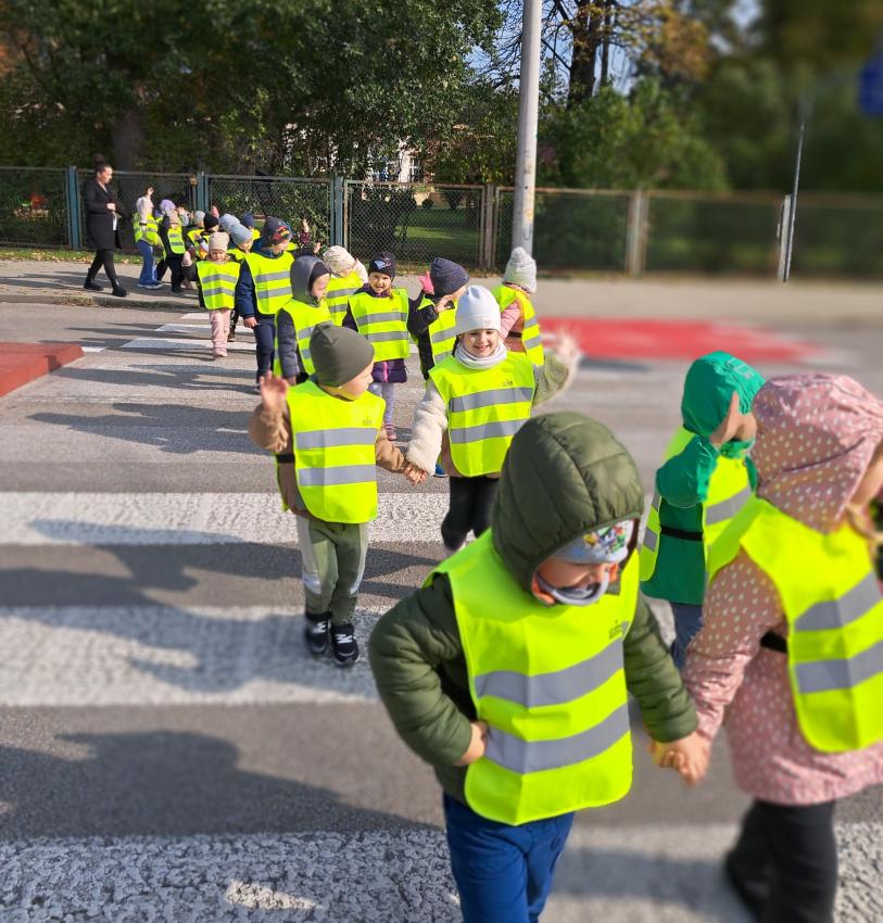 Bezpieczeństwo dziecka na drodze to bardzo ważna sprawa, której trzeba uczyć wszystkie dzieci, dlatego również w naszej grupie nie mogło zabraknąć takich zajęć. Dzieci zapoznały się z zasadami bezpiecznego i kulturalnego uczestnictwa w ruchu drogowym. W sali przedszkolaki zapoznały się z podstawowymi  znakami drogowymi, oraz same mogły pokazać jak bezpiecznie przejść na drugą stronę jezdni. Wiadomo jednak, że każdą teorię należy zastosować w praktyce i tak też było z naszymi zuchami  - przechodziły przez przejścia dla pieszych oraz sprawdzały swoją wiedzę dotyczącą znaków drogowych.