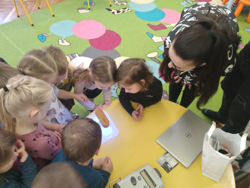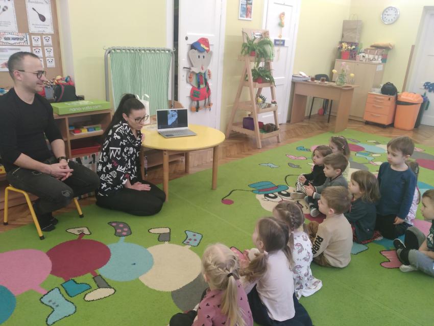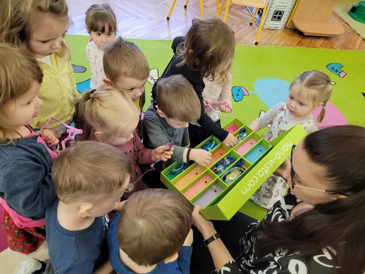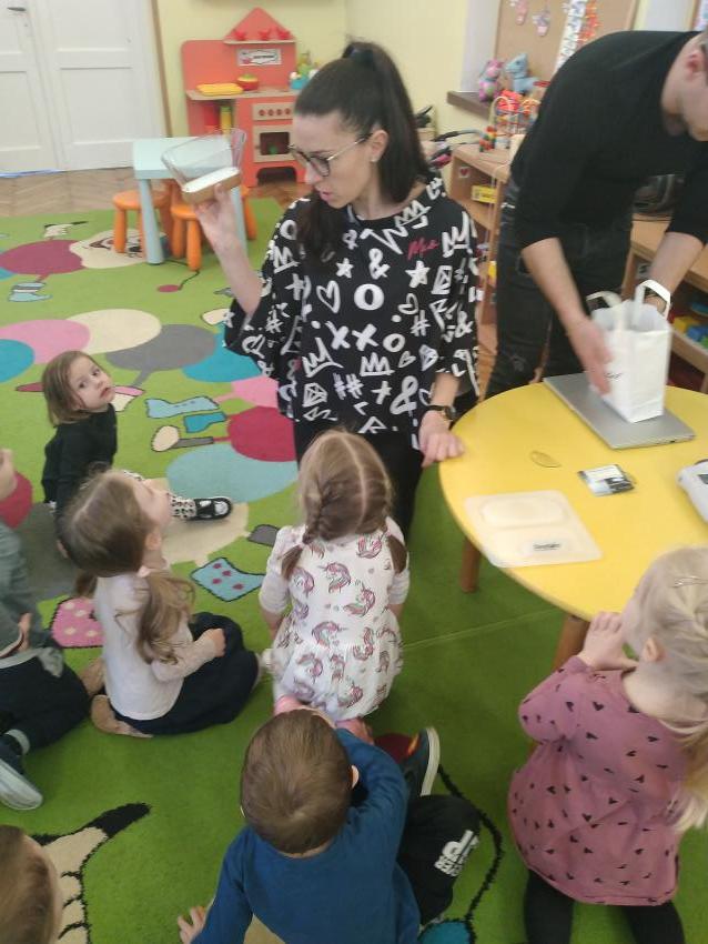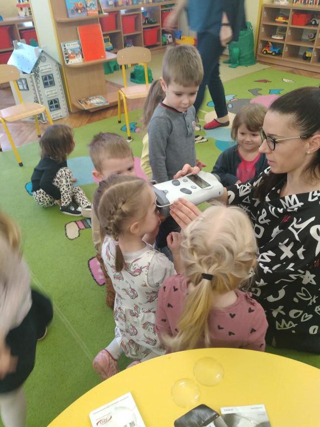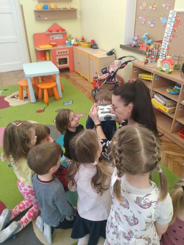 Kolejni goście w grupie Pracowite Pszczółki: rodzice Gabrysia B. - P. Agnieszka i P. Jacek , którzy opowiedzieli dzieciom o tym jak wygląda praca optyka.