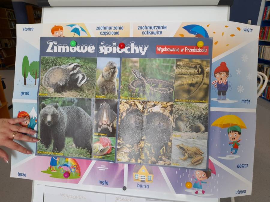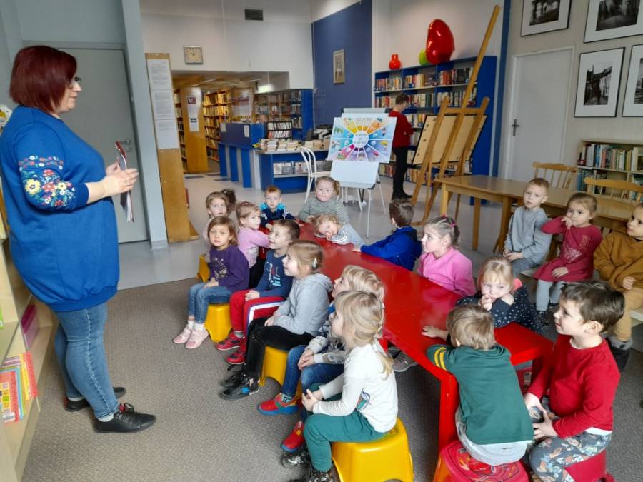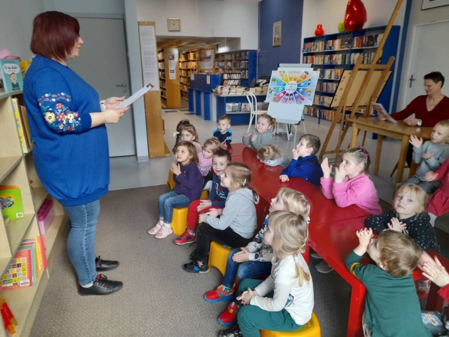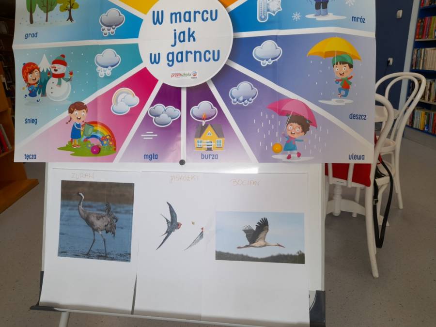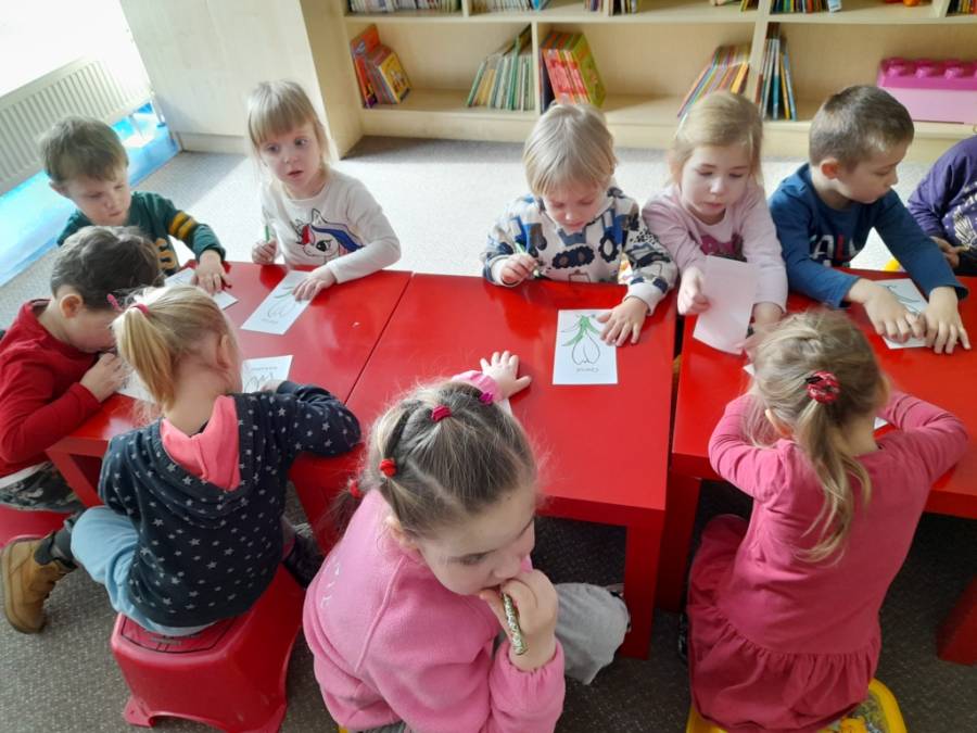 Dzisiejsze spotkanie poświęcone było wiośnie. Pani Agnieszka utrwaliła z dziećmi wiadomości dotyczące charakterystycznych cech wiosny, przylotu ptaków, budzenia się zwierząt oraz pierwszych kwiatów. Na zakończenie dzieci kolorowały krokusy. Pożyczyliśmy również książeczki, zachęcając dzieci do korzystania z biblioteki.