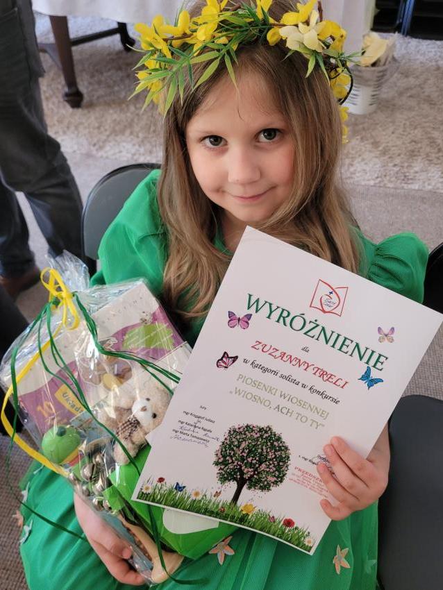 Dnia 22.03 starszaki z naszego przedszkola wzięły udział w konkursie muzycznym ,,Wiosno, ach to Ty" zoorganizowanym przez przedszkole Sacre Coeur w Tarnowie. Gratulujemy Zuzi Treli z gr. V zdobycia wyróżnienia w kategorii solista.