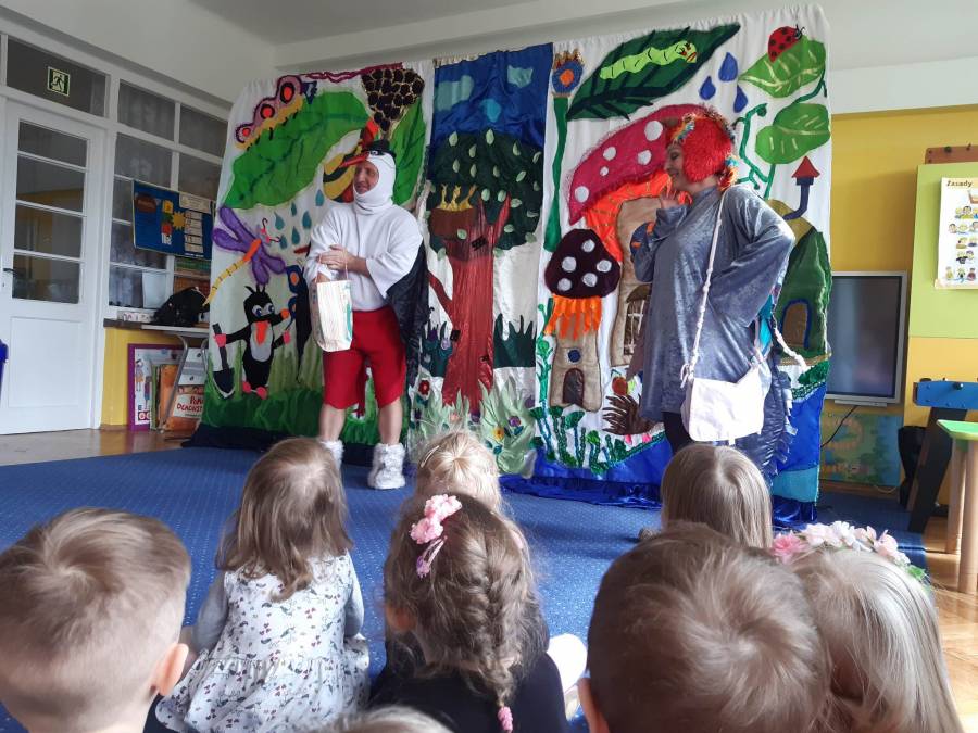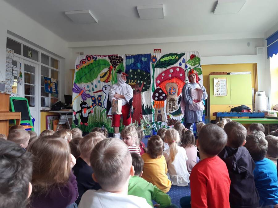 Aktorzy z Agencji Artystycznej KANON w sposób humorystyczny przybliżyli dzieciom wiosenne zwyczaje panujące wśród zwierząt. Wiosenne porządki stały się morałem płynącym z zabawnego przedstawienia. Zaaferowane nadchodzącą wiosną zwierzęta, pokazują dzieciom jak ważne jest porządkowanie okolicy domu i przedszkola, sali czy swojego przedszkola. Przedstawienie bardzo spodobało się dzieciom.