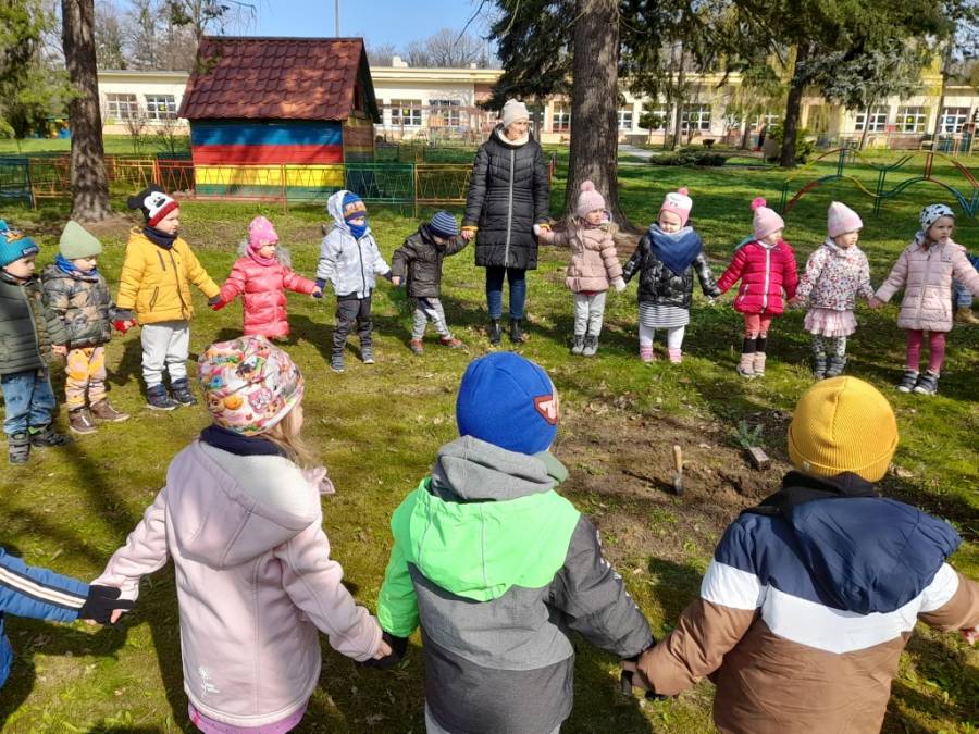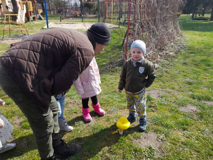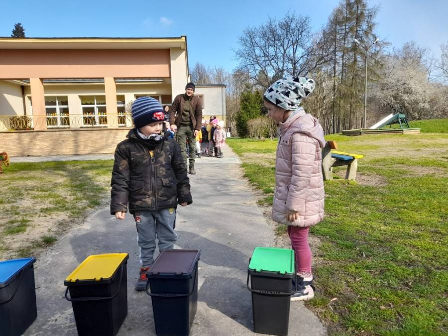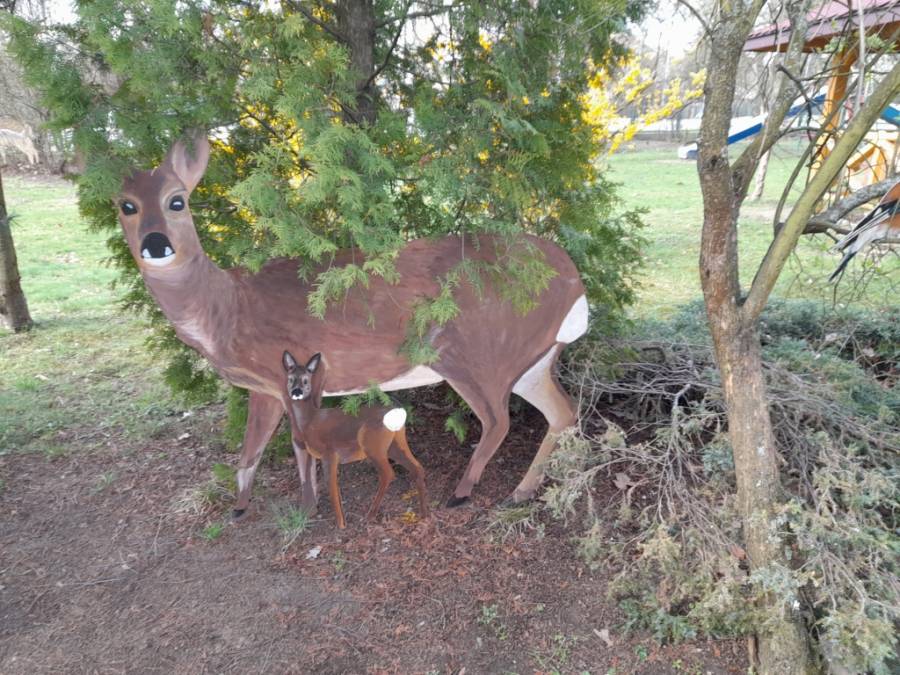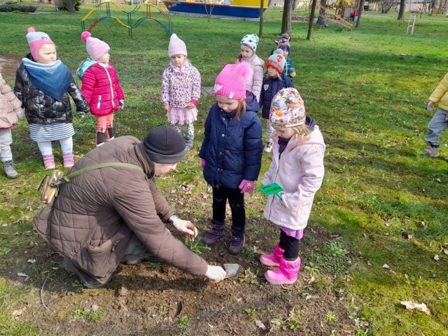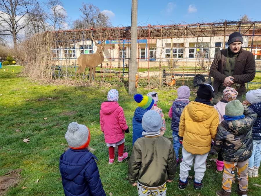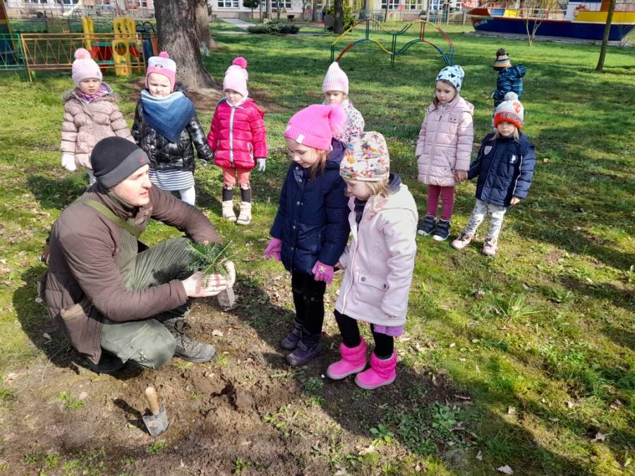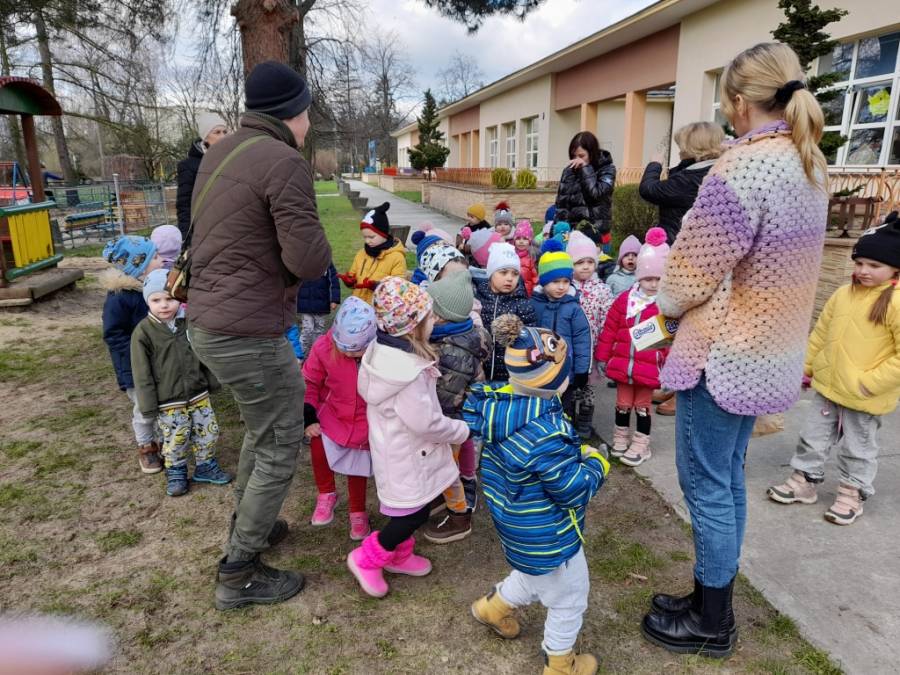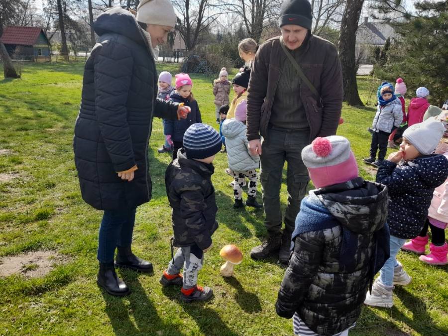Dzisiejsze warsztaty to ciekawe wydarzenie. Odbyły się one w ogrodzie przedszkolnym imitującym las, gdzie ukryte były  zwierzęta leśne, a także grzyby /jadalne i niejadalne/.  Pan leśnik opowiadał o życiu zwierząt, ich warunkach bytowych i zwyczajach. Piękne sylwety zwierząt pobudziły wyobraźnię dzieci. Wysłuchały wielu ciekawostek o faunie i florze. Posadziły drzewko, nadając jodle imię Wioletta, którą obiecały doglądać i podlewać. Dziękujemy Panu leśnikowi za ciekawą lekcję przyrody.