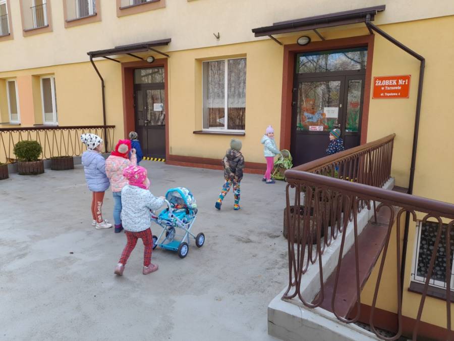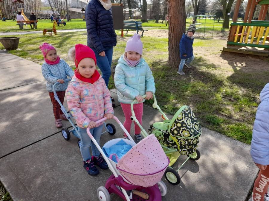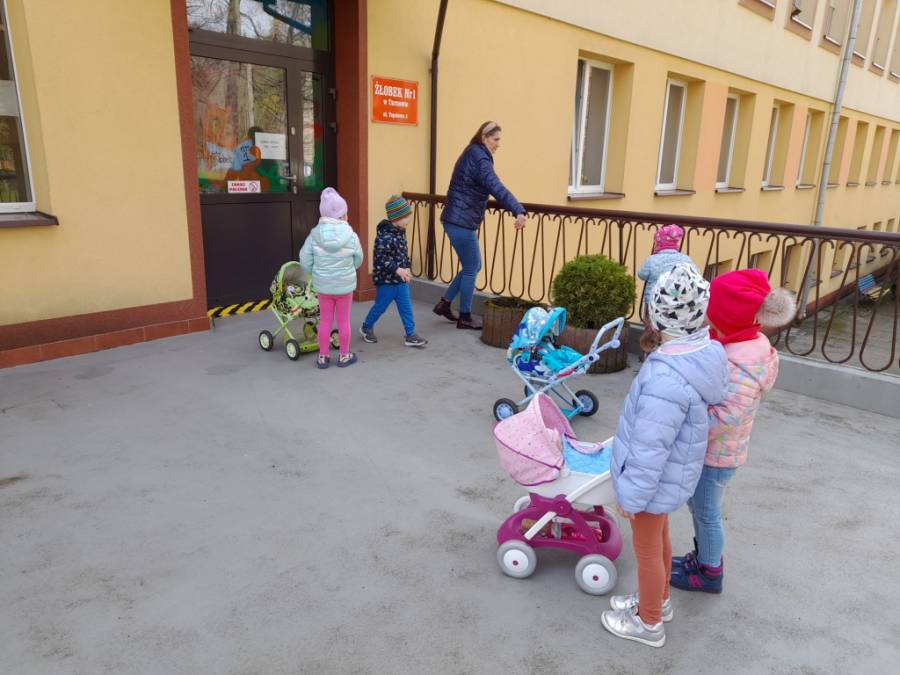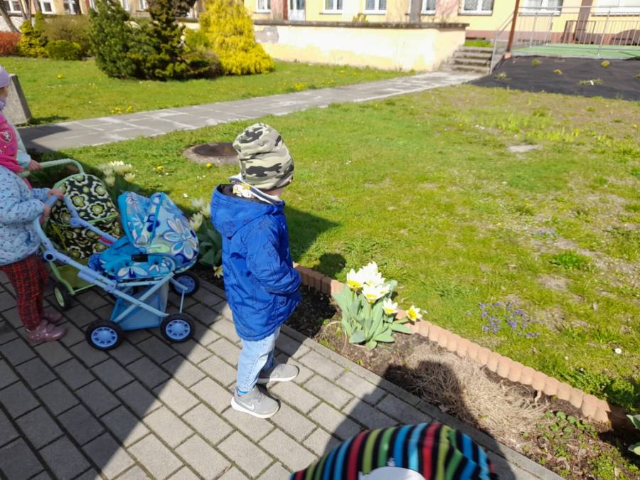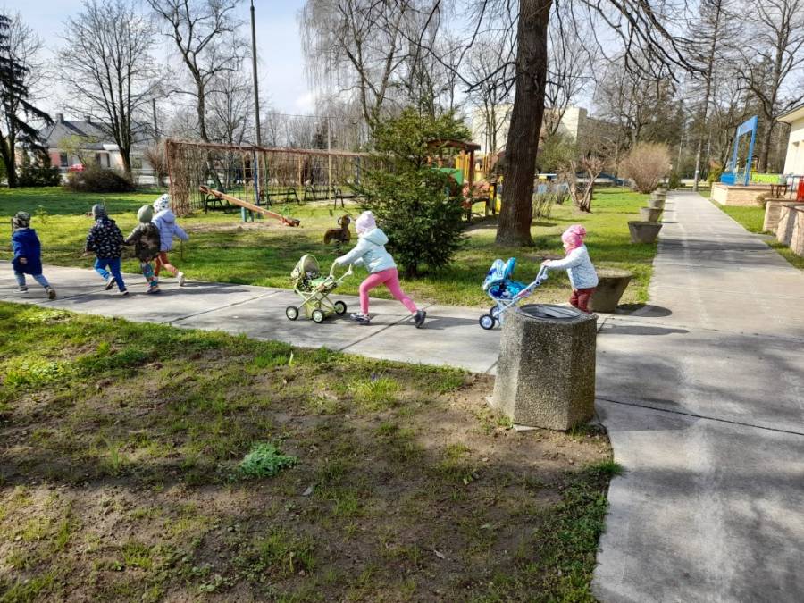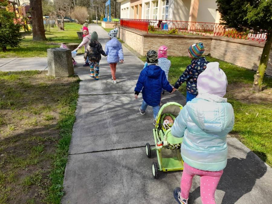 Dziś na spacer dzieci zabrały lalki, którymi troskliwie się opiekowały.