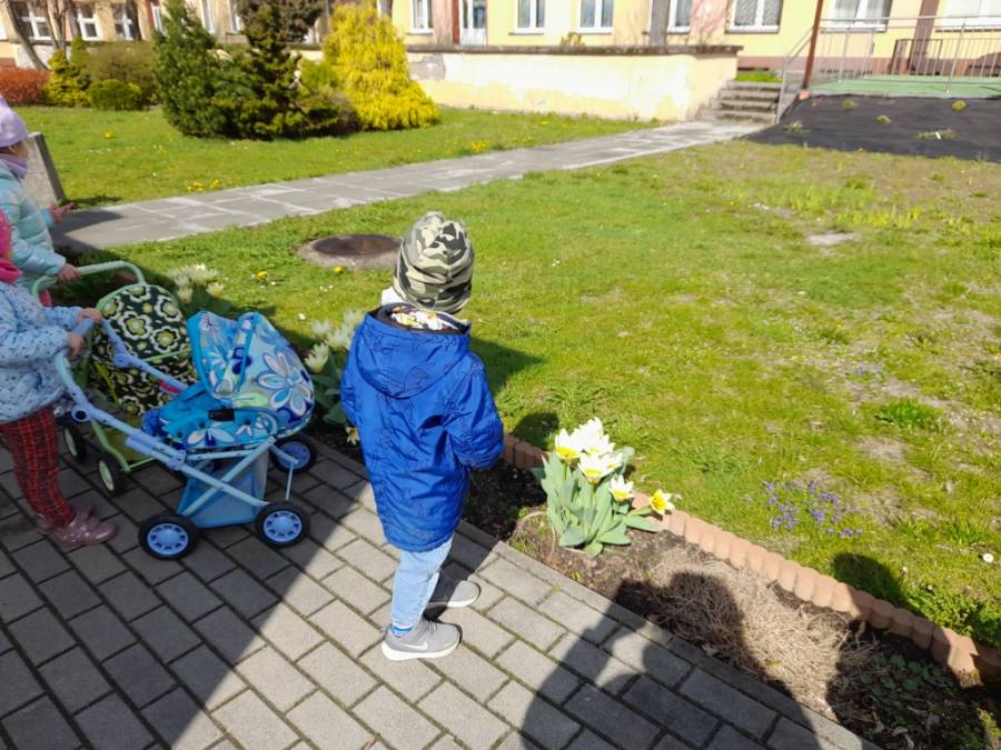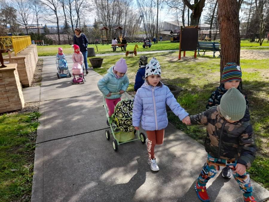 11.04.2023 r. Spacer alejkami ogrodu i w pobliżu przedszkola - gr. I