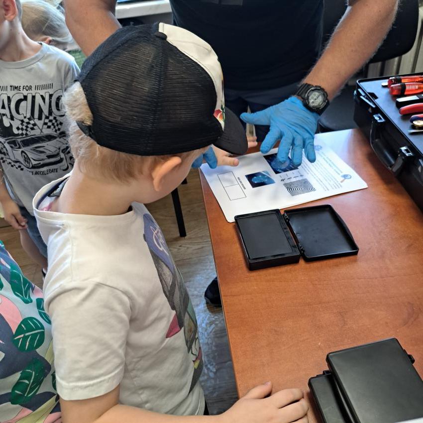 Dzieci  z grupy III odwiedziły Komisariat Policji Tarnów Centrum, gdzie miały okazję pogłębić wiedzę nt. specyfiki zawodu policjanta. Spotkały się z przedstawicielami Wydziału Ruchu Drogowego, Prewencji i Techniki Kryminalistycznej. O wszystkim w bardzo interesujący sposób opowiadał oficer prasowy Komendy Miejskiej Policji w Tarnowie asp. szt. Paweł Klimek.