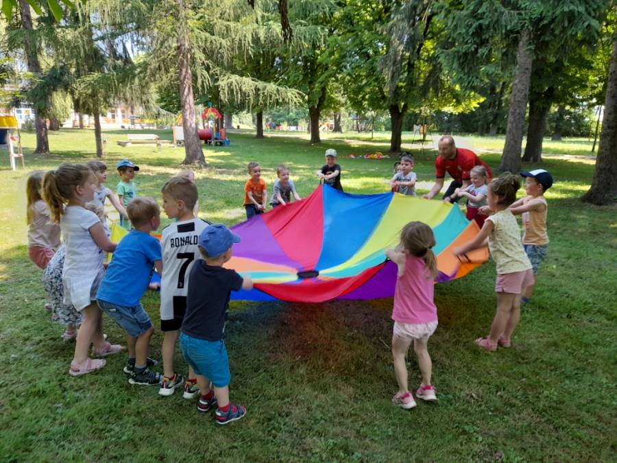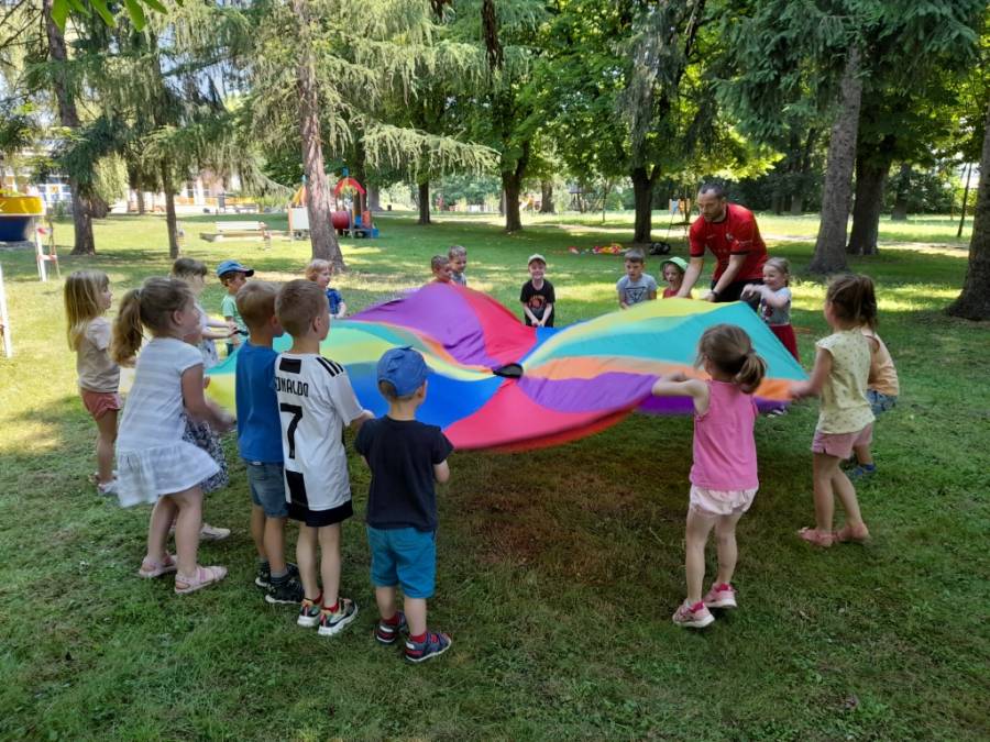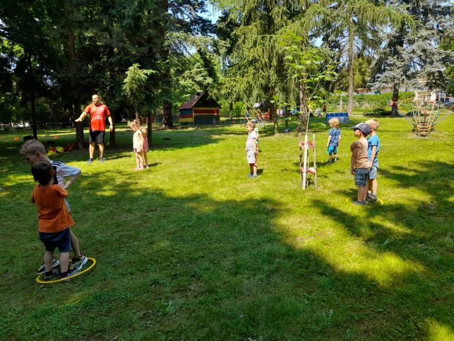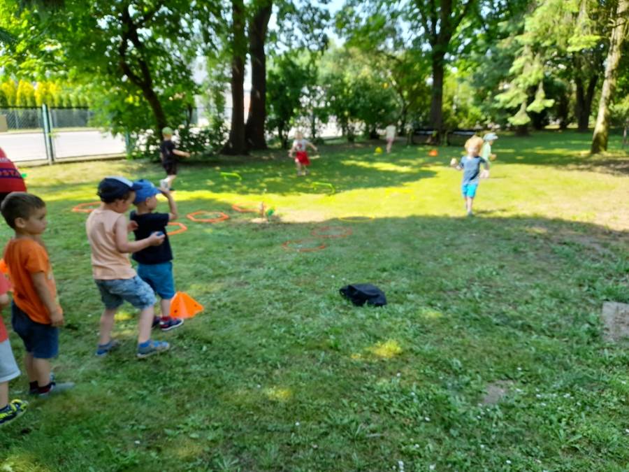20.06.2023 r. Gry i zabawy sportowe w ogrodzie przedszkolnym gr. I i II