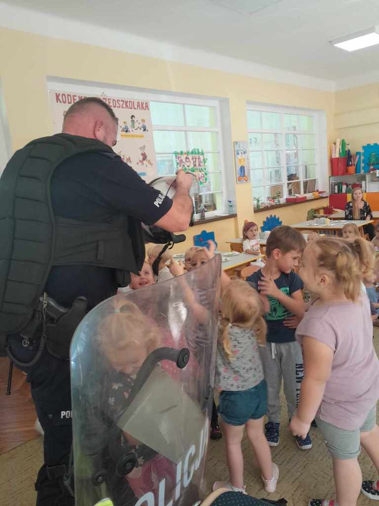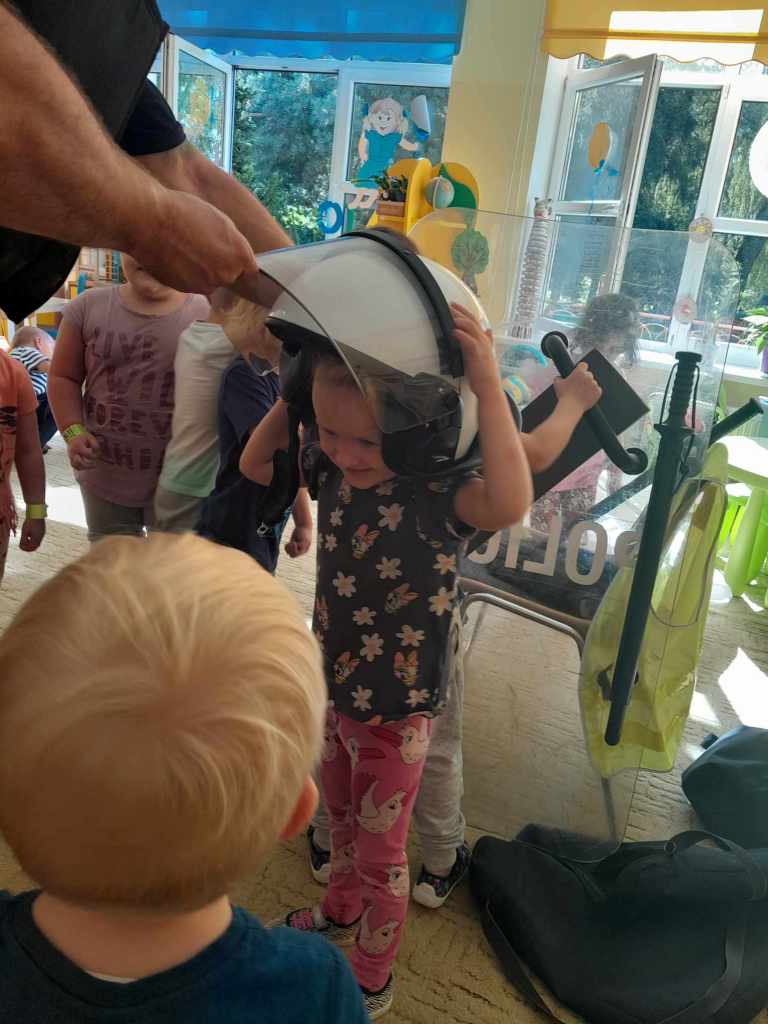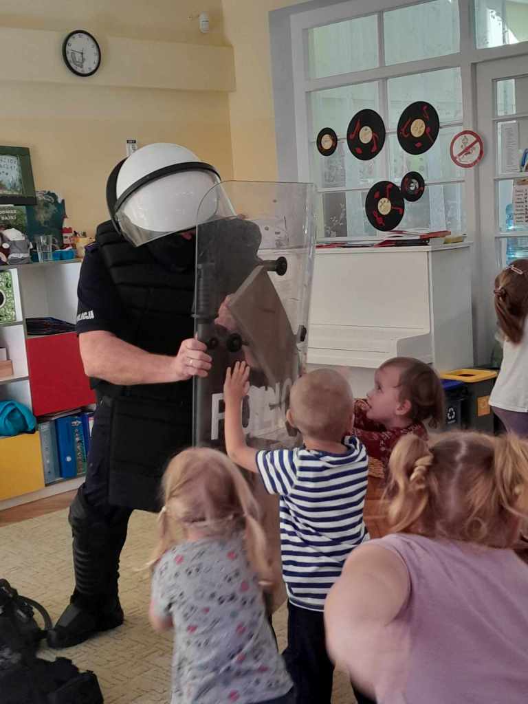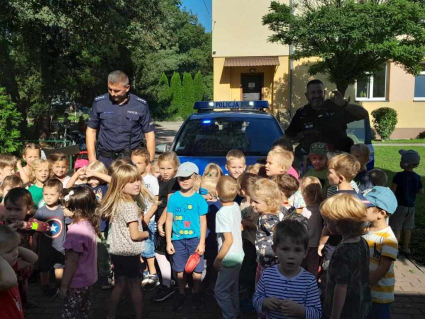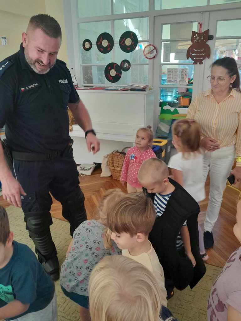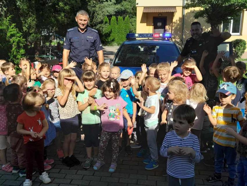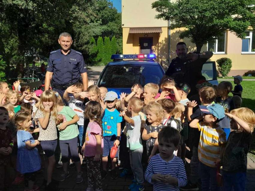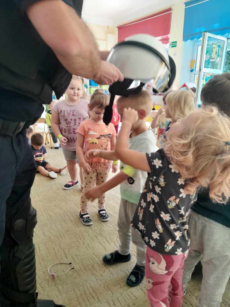 Dzieci miały okazję zapoznać się z pracą, jaką wykonują policjanci. Serdecznie dziękujemy za ciekawą lekcję!