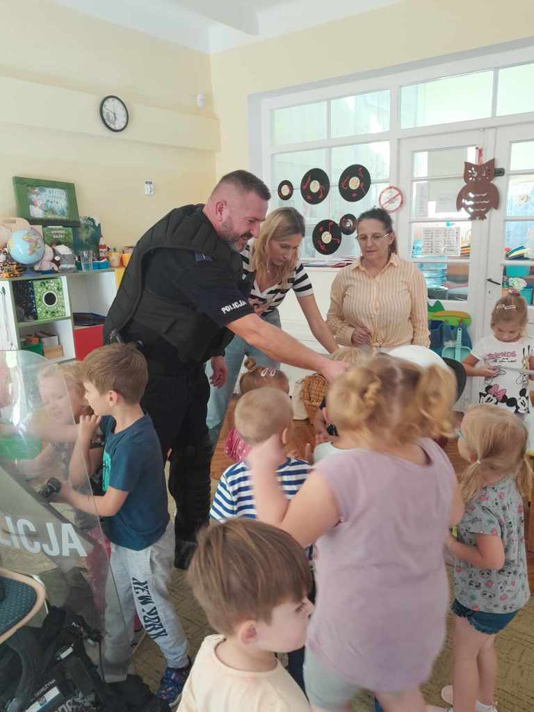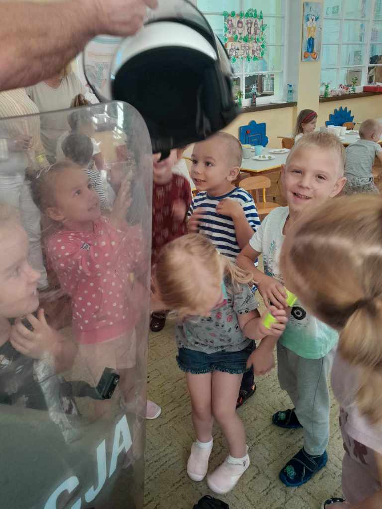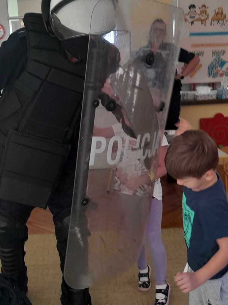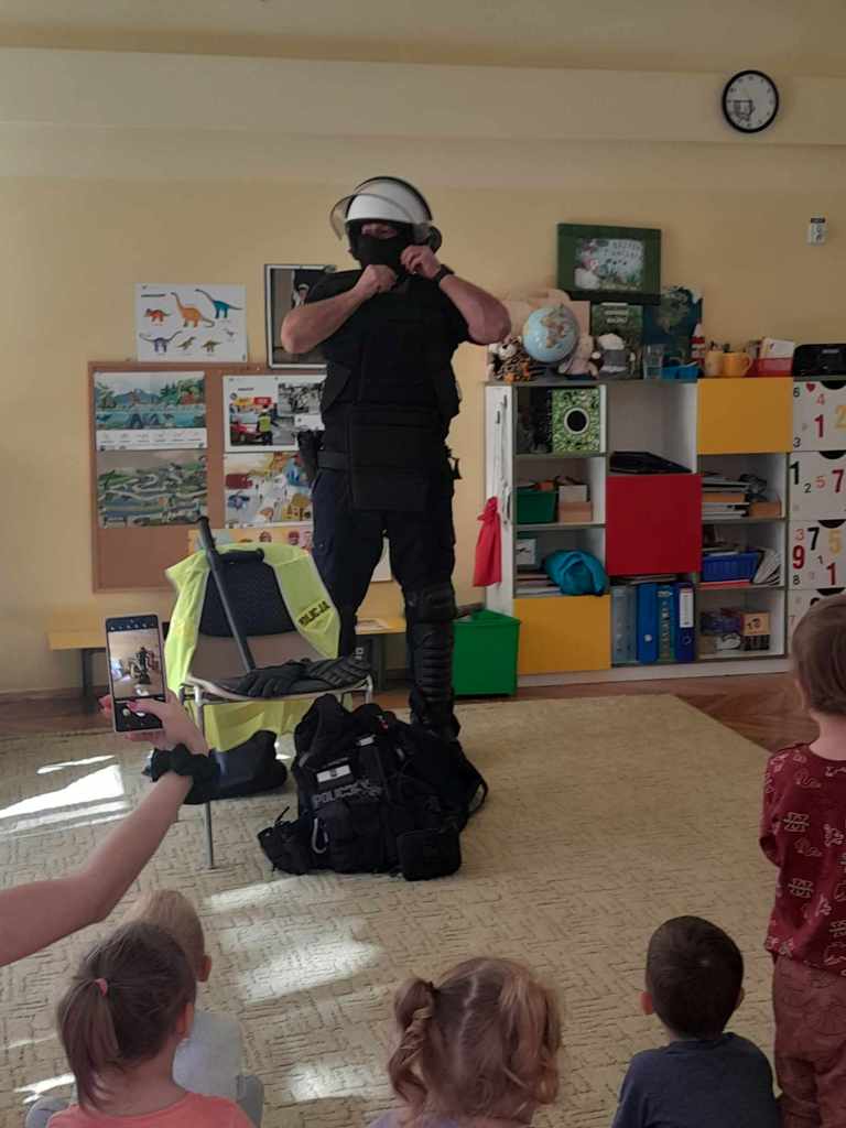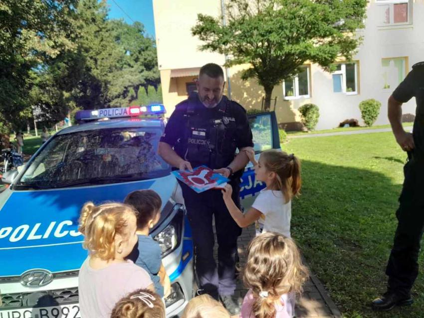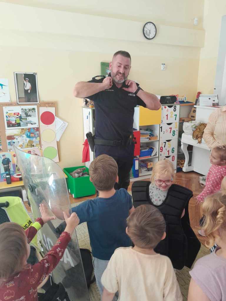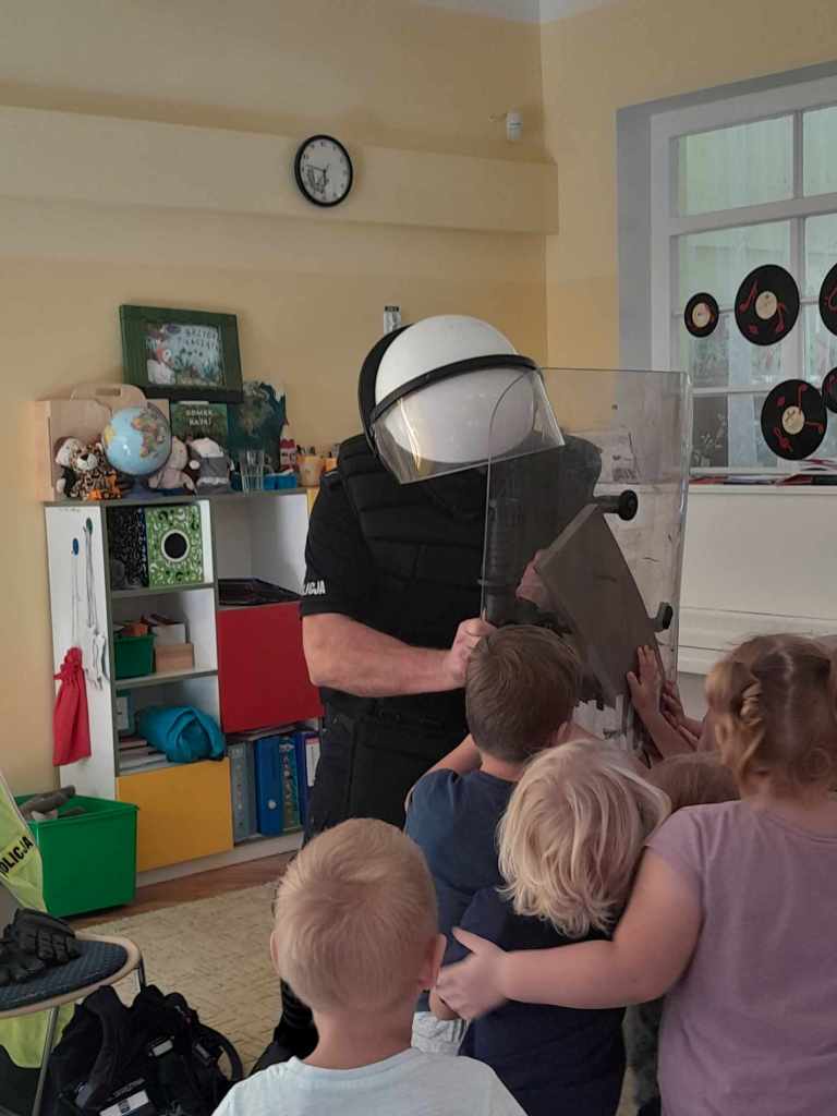Dzieci miały okazję zapoznać się z pracą, jaką wykonują policjanci. Serdecznie dziękujemy za ciekawą lekcję!