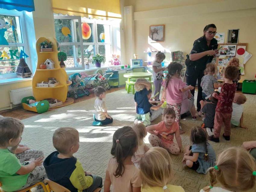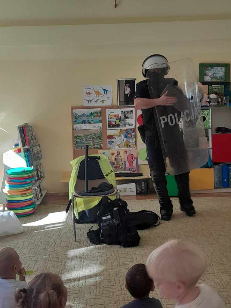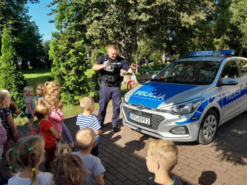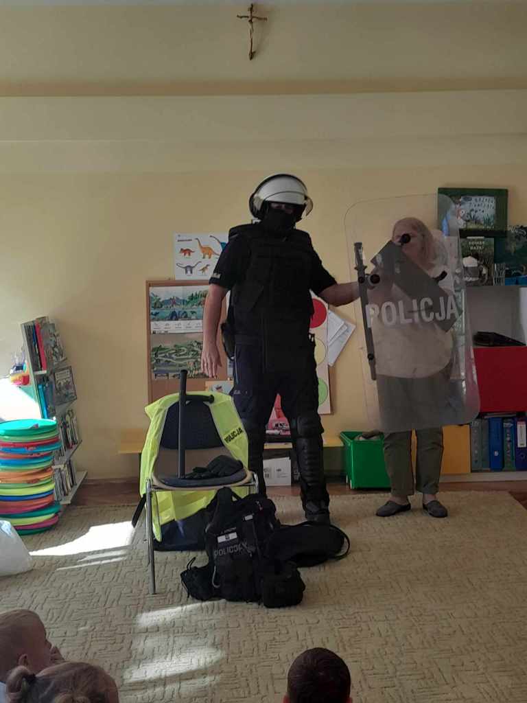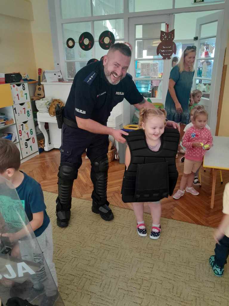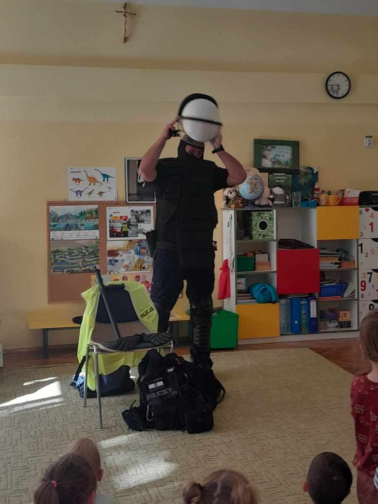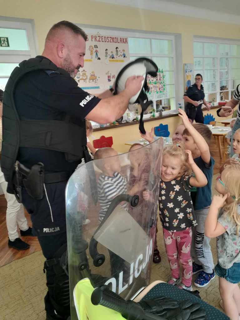 Dzieci miały okazję zapoznać się z pracą, jaką wykonują policjanci. Serdecznie dziękujemy za ciekawą lekcję!