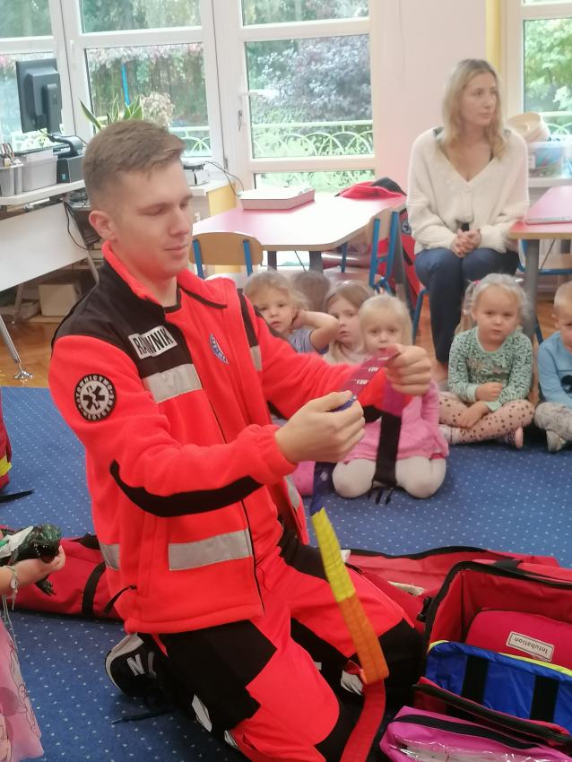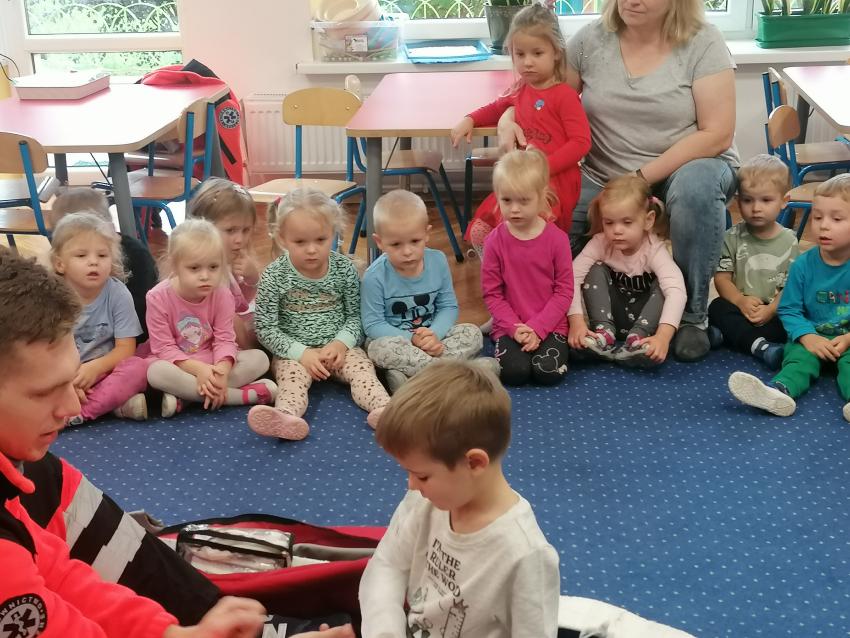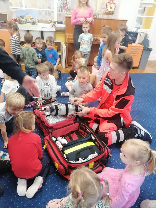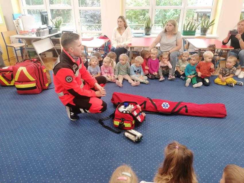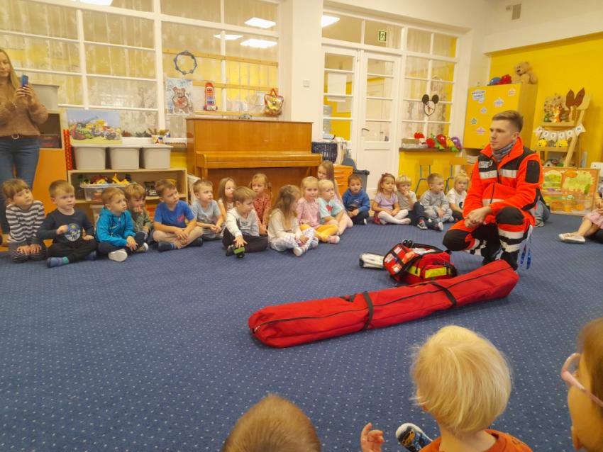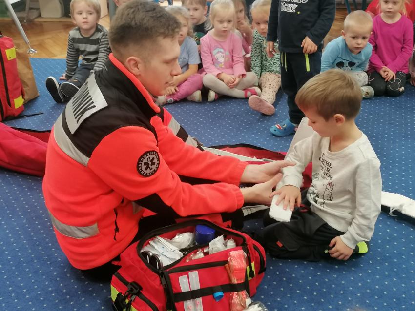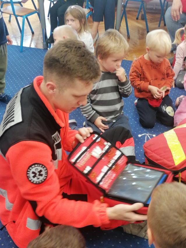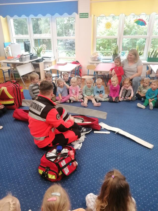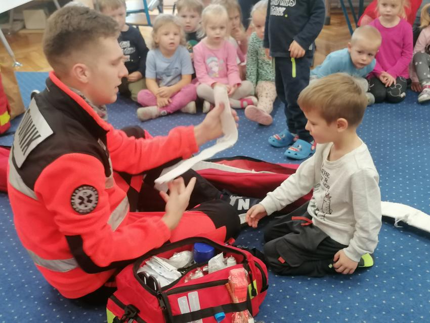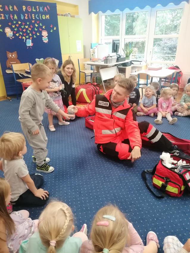 Gośćmi dzisiejszego spotkania z książką byli przedstawiciele pracowników służby zdrowia. Dzieci wysłuchały opowiadania o chorym Mietku. Poznały zawód pielęgniarki i ratownika medycznego. Bardzo dziękujemy za miłe spotkanie !