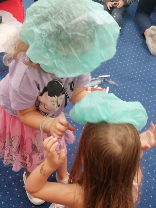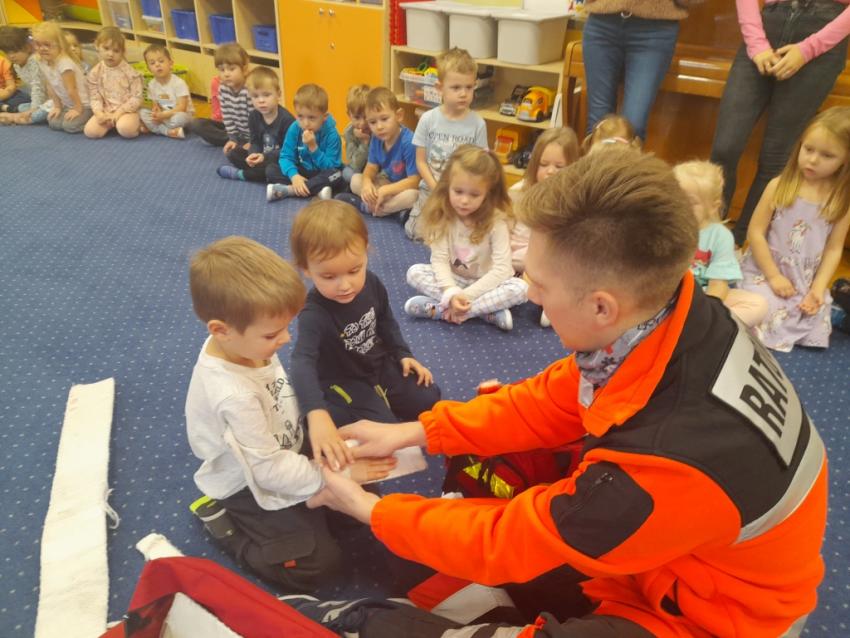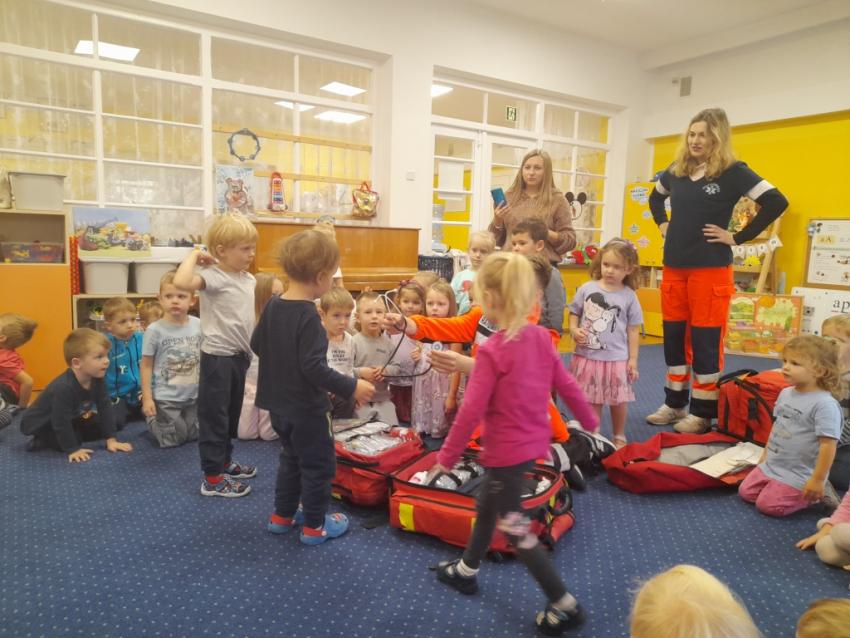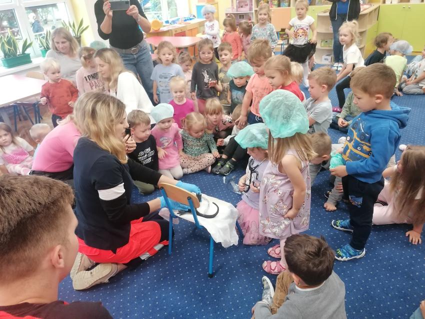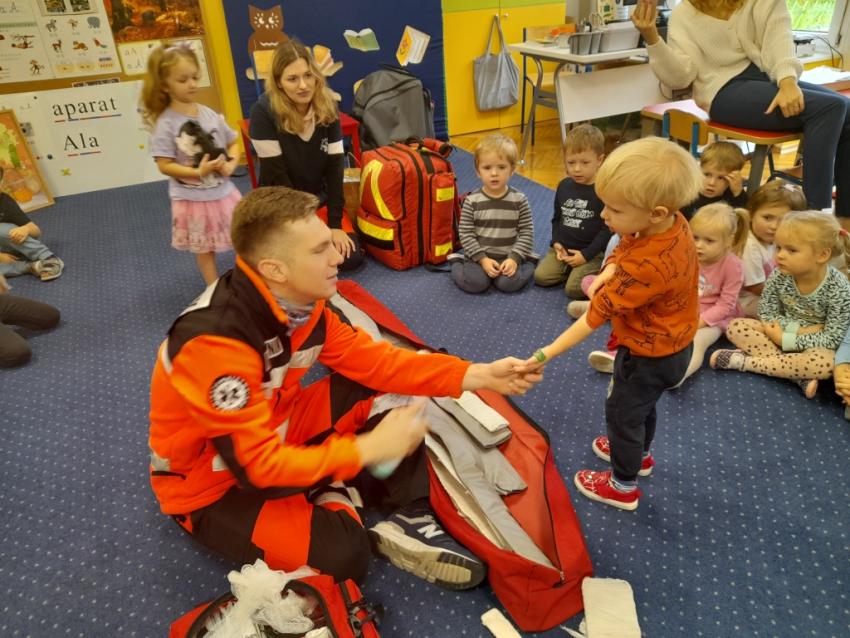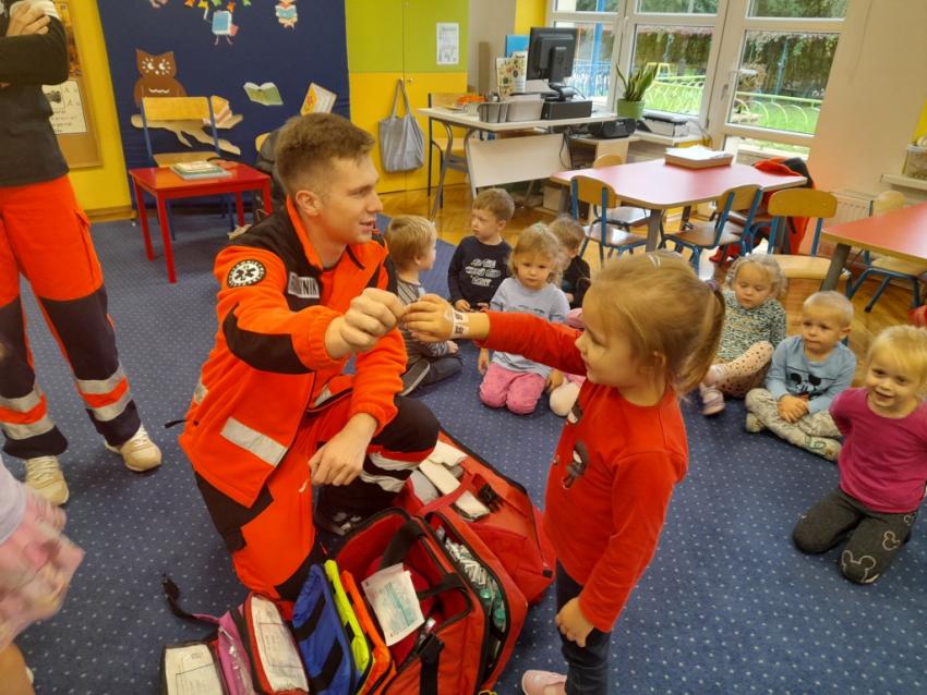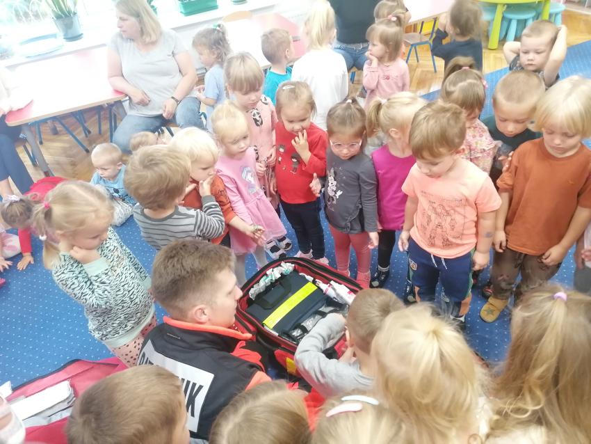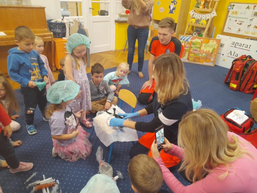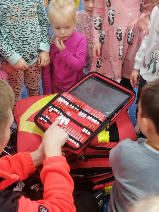 Gośćmi dzisiejszego spotkania z książką byli przedstawiciele pracowników służby zdrowia. Dzieci wysłuchały opowiadania o chorym Mietku. Poznały zawód pielęgniarki i ratownika medycznego. Bardzo dziękujemy za miłe spotkanie !