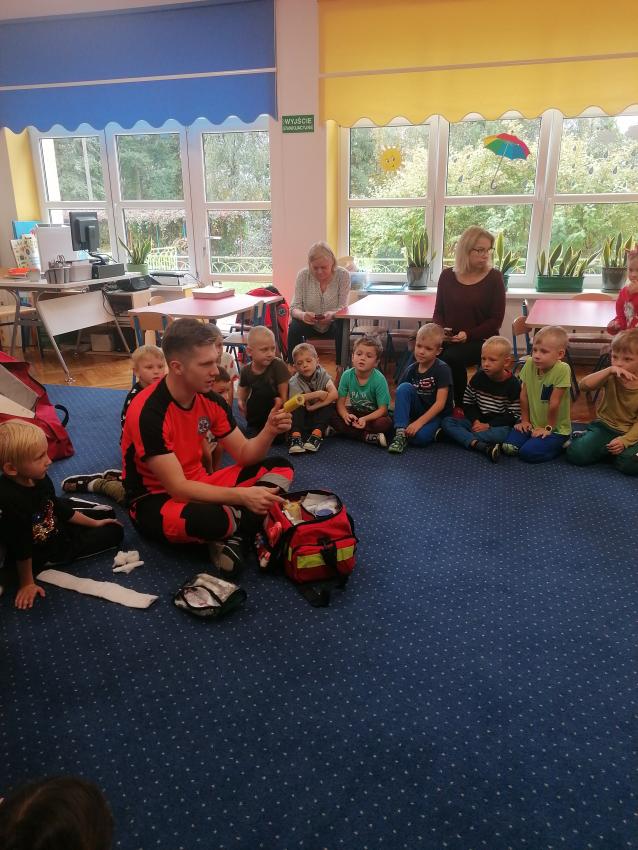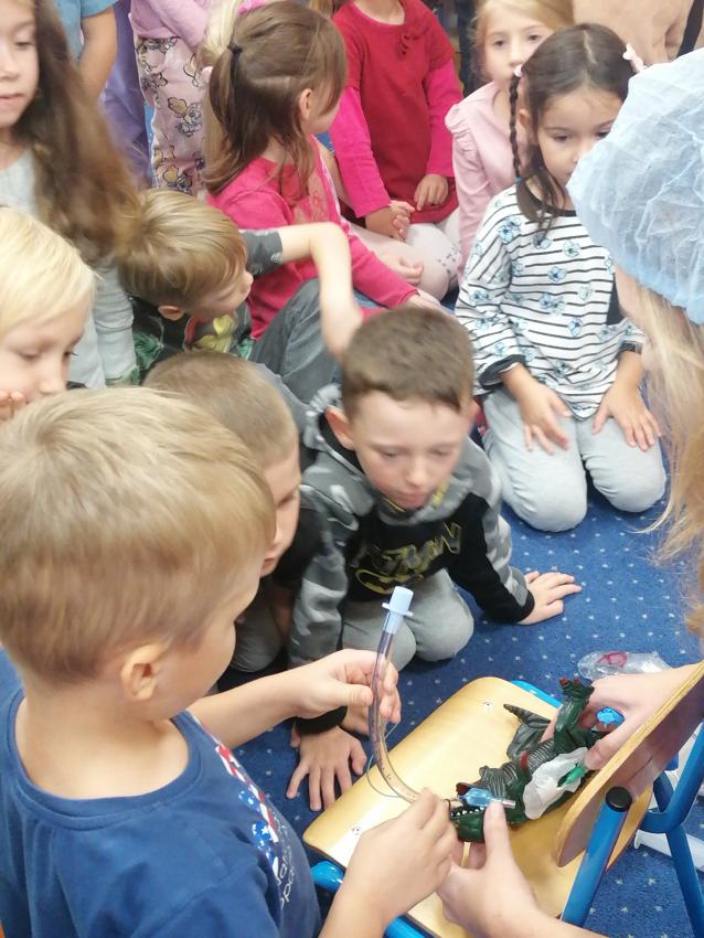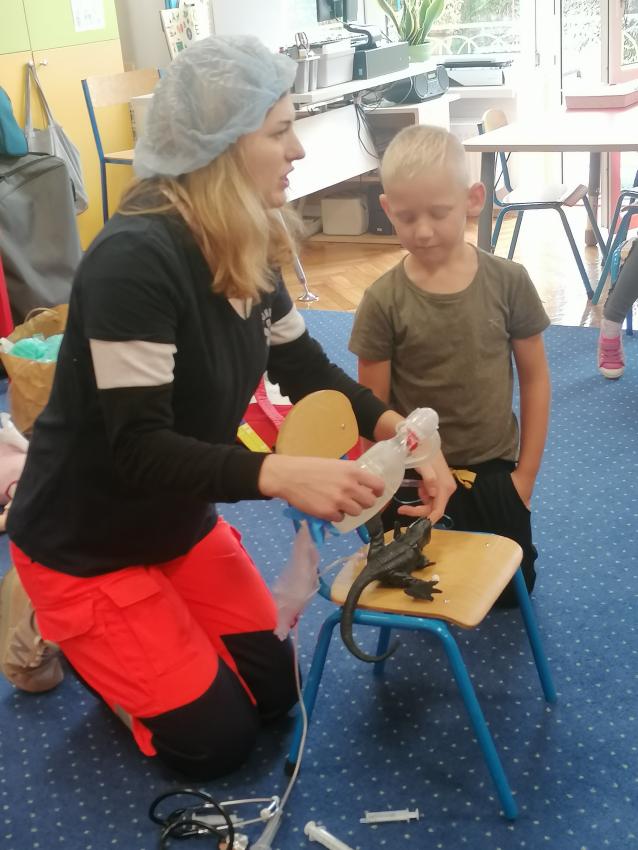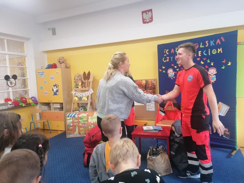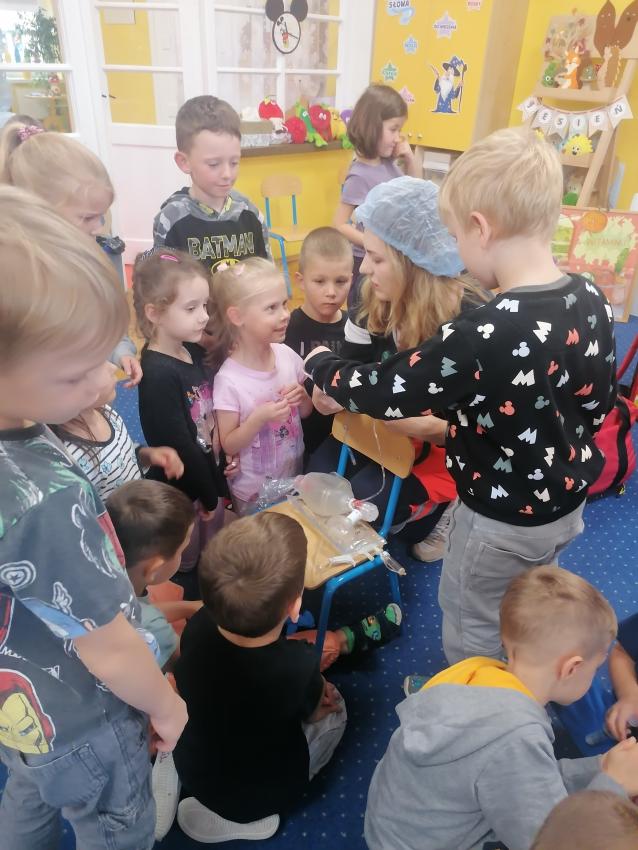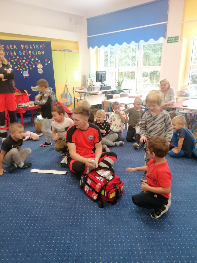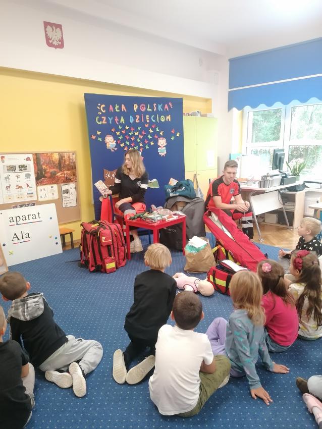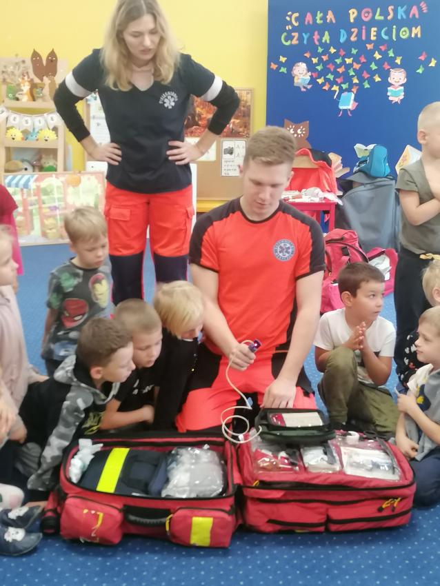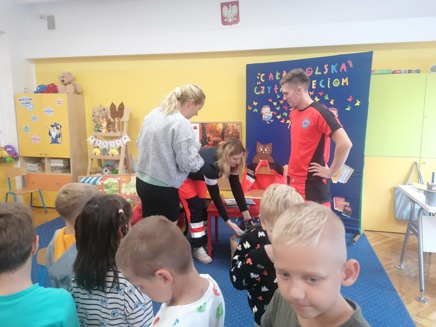 Gośćmi dzisiejszego spotkania z książką byli przedstawiciele pracowników służby zdrowia. Dzieci wysłuchały opowiadania o chorym Mietku. Poznały zawód pielęgniarki i ratownika medycznego. Bardzo dziękujemy za miłe spotkanie !