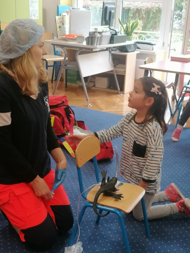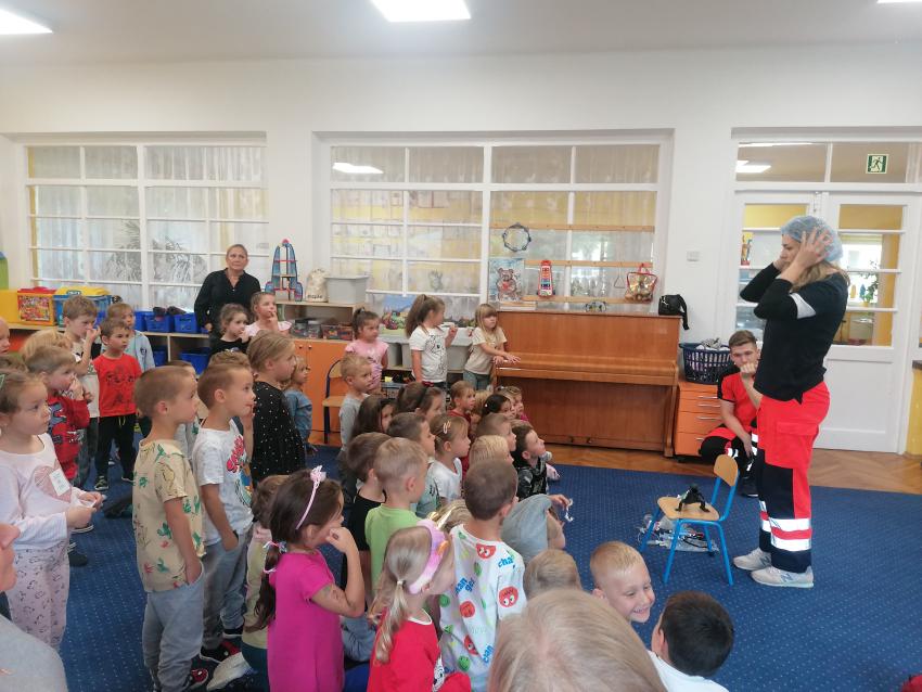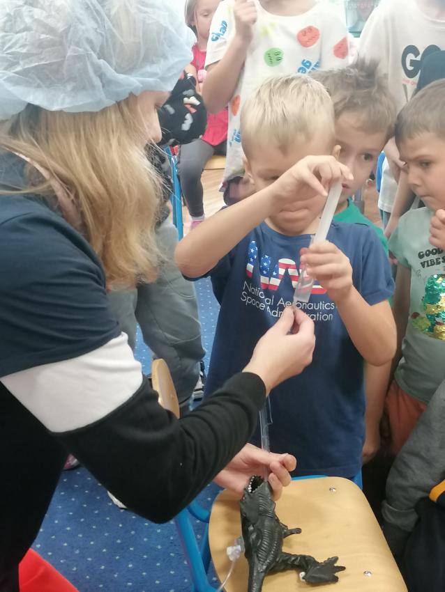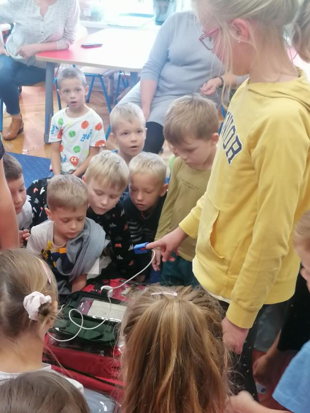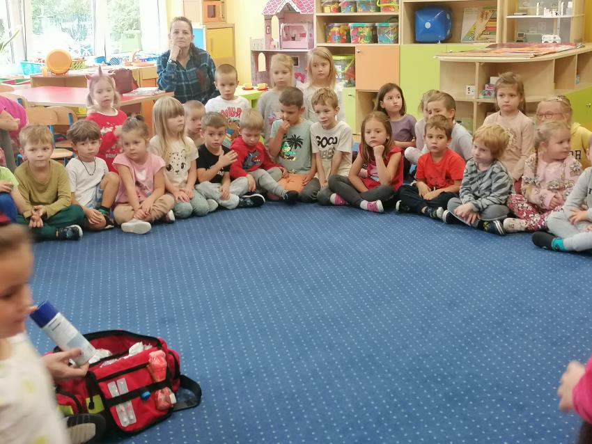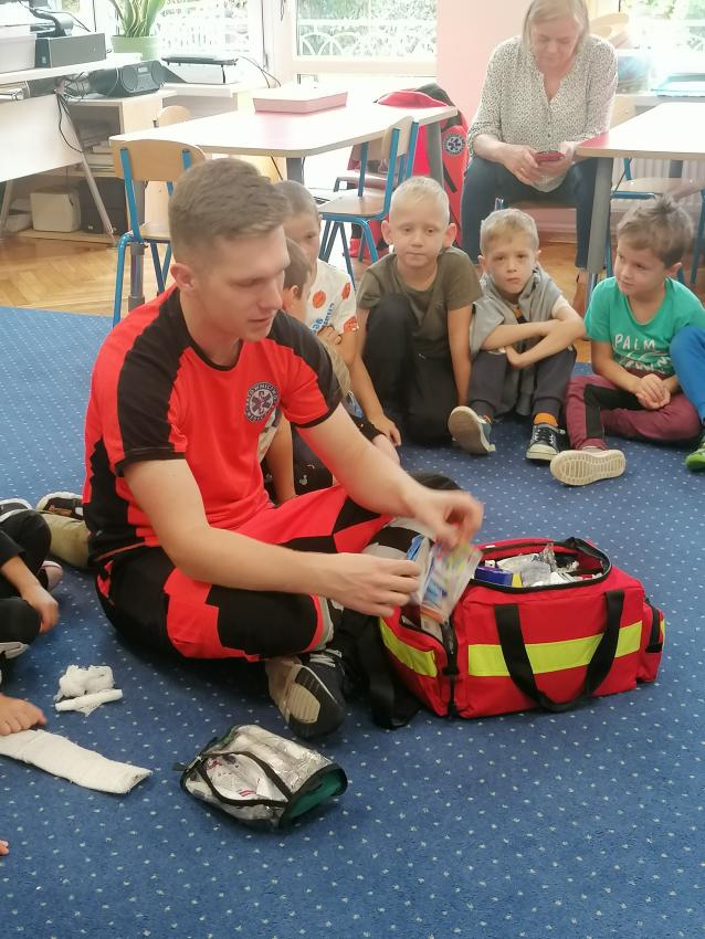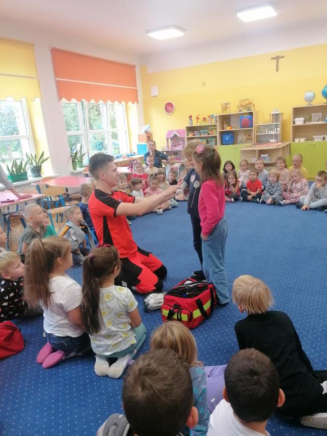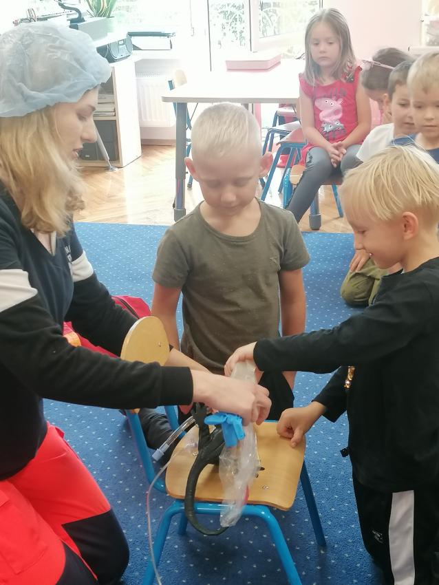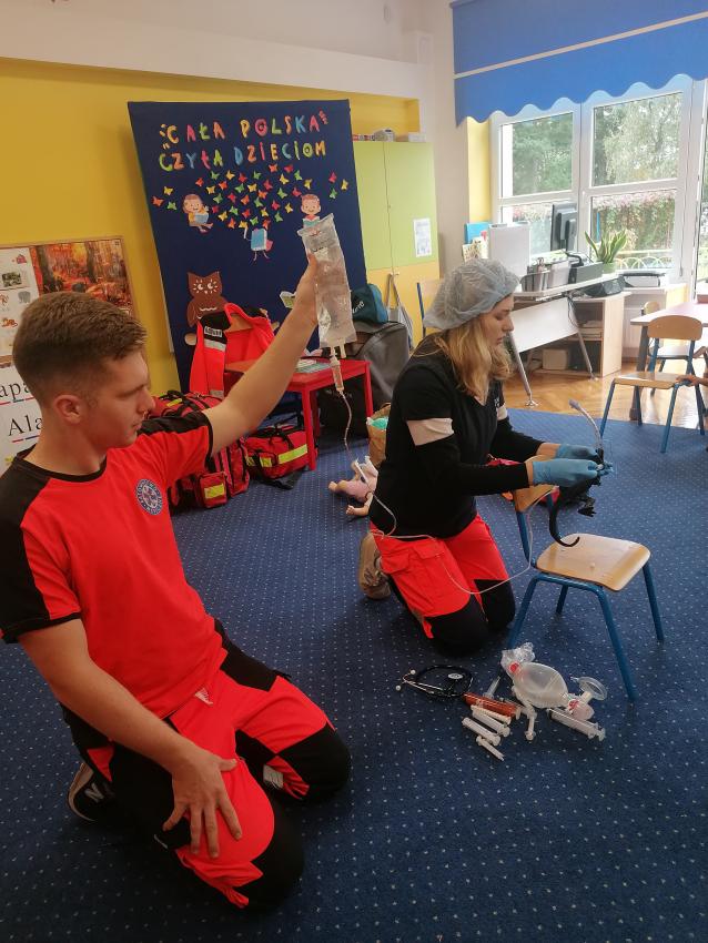 Gośćmi dzisiejszego spotkania z książką byli przedstawiciele pracowników służby zdrowia. Dzieci wysłuchały opowiadania o chorym Mietku. Poznały zawód pielęgniarki i ratownika medycznego. Bardzo dziękujemy za miłe spotkanie !